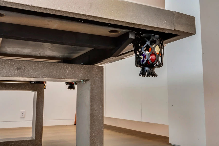 Take our cue, you need this. A classic game of billiards is forever changed. James De Wulf, a concrete guru, is responsible. This Concrete Pool Table is inventive, functional, and bold. Your indoor activities just got more fun.