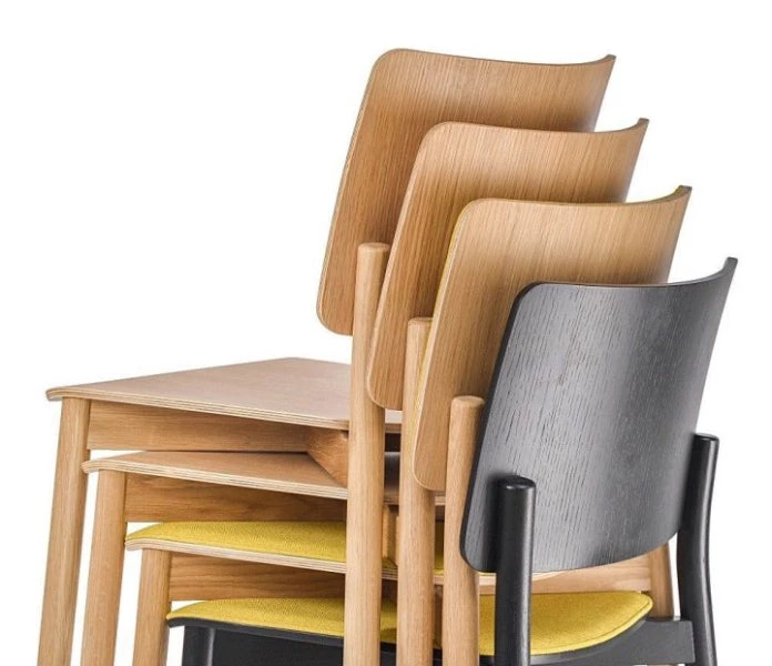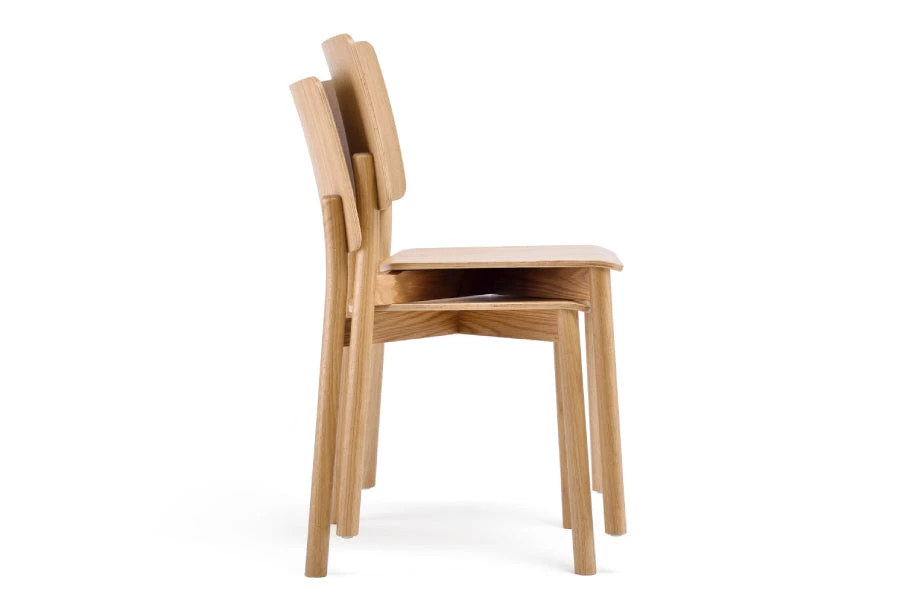 Mia chair features a plywood seat and back with a solid wood frame. It’s timeless and recognizable form is designed to match and blend in with its surroundings. Mia chair is comfortable, stackable, durable and easy to clean.