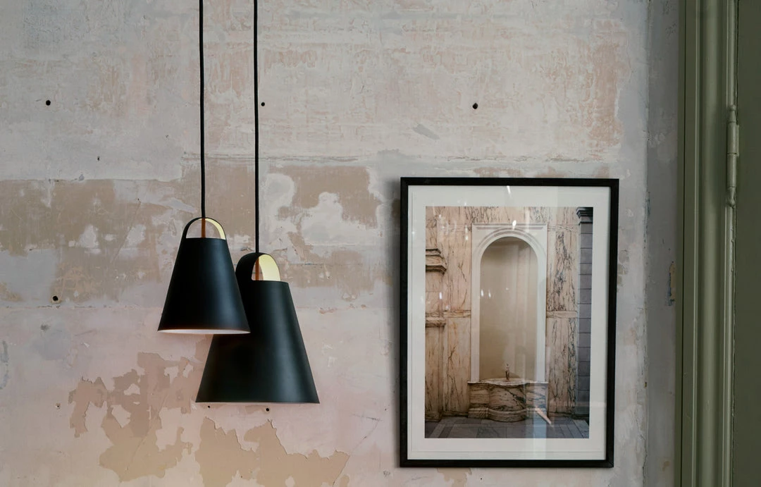The fixture emits soft comfortable downlight. The conical shape and the matt, white-painted inside help assure even distribution of the light. The opening in the top of the fixture provides decorative illumination of the arch above, and ensures that the fixture retains the full expression of its visual shape both when illuminated and when switched off.