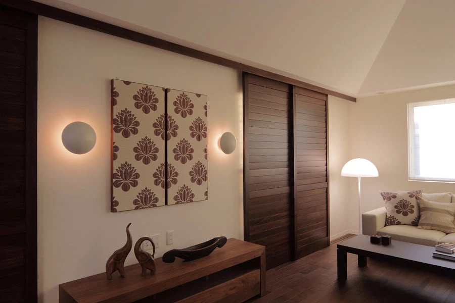 The fixture emits a soft and comfortable illumination. The hemispherical shade reflects the light downwards, and the material used ensures that the majority of the light is spread diffusely in the room from the surface of the shade.