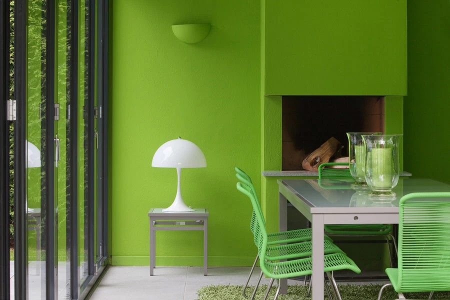 The fixture emits a soft and comfortable illumination. The hemispherical shade reflects the light downwards, and the material used ensures that the majority of the light is spread diffusely in the room from the surface of the shade.