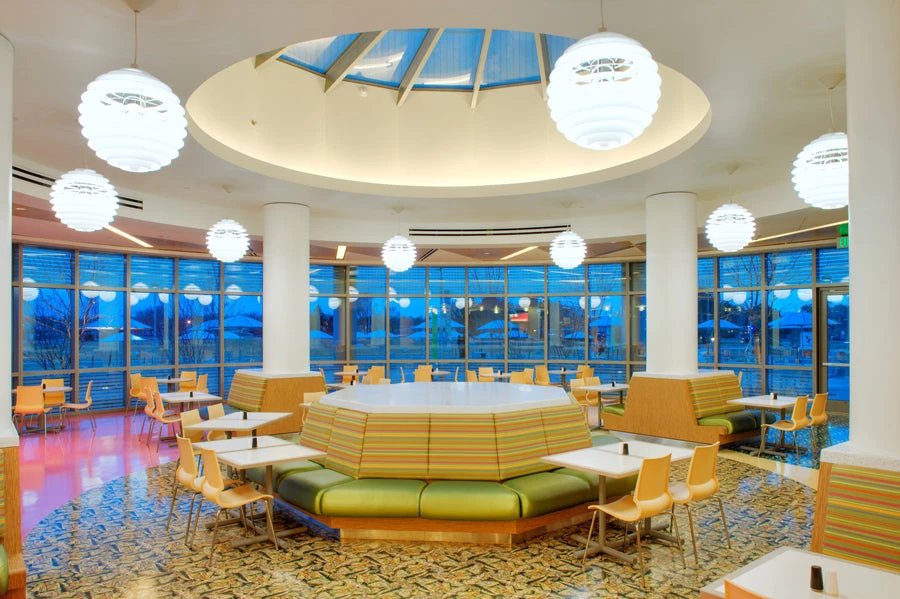 The fixture provides 100% glare-free light. The geometrical, spherical design is based on the principle of illuminating all surfaces at the same angle. This ensures uniform light around the fixture, illuminating both walls and ceiling. Matt painted under-surfaces and glossy top surfaces result in an attractive reflection of the diffused light, creating uniform light distribution around the fixture.