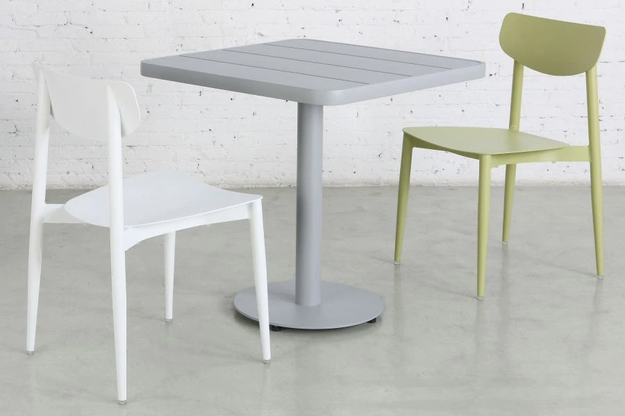 The modern Ally Chair is durable and suitable for residential or commercial spaces. It can be used indoors or outdoors thanks to its epoxy coated aluminum frame. The molded plywood seat version is available for indoor use.