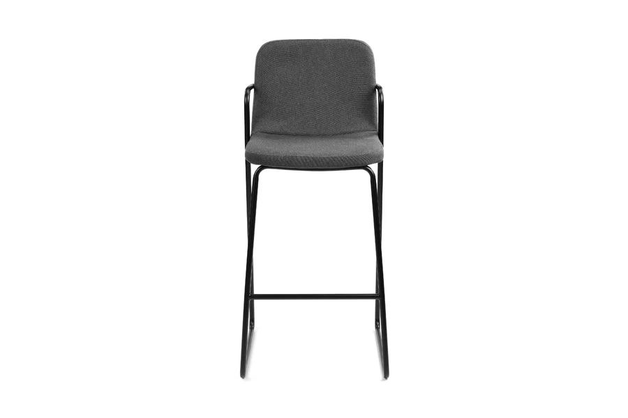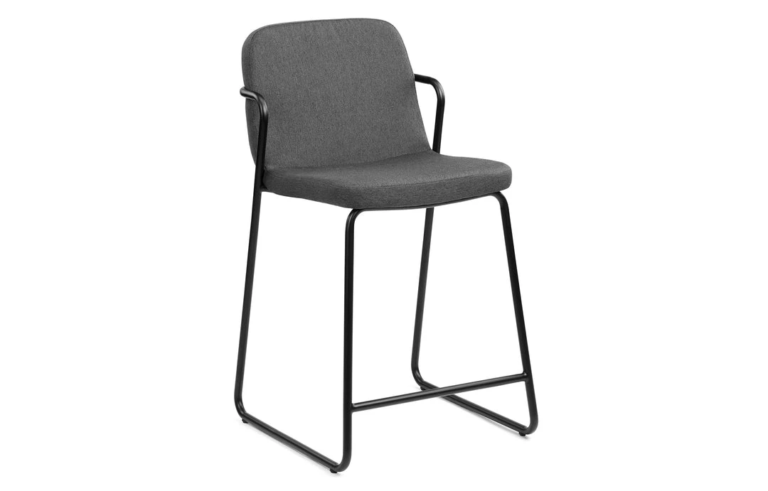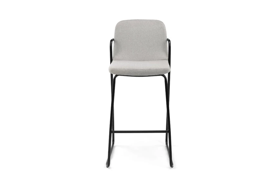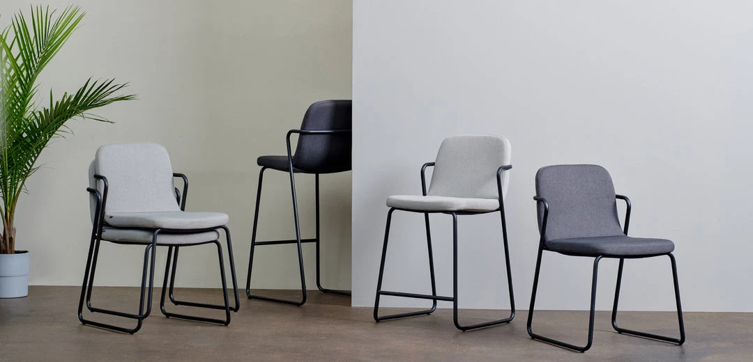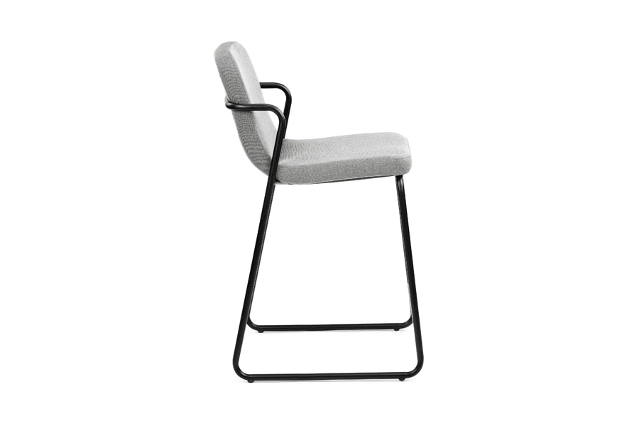 Available in bar and counter heights, the Zag Counter Stool features a padded and upholstered plywood shell and epoxy coated steel frame. It is a contract grade counter stool and suitable for residential or commercial use. Upholstery options include commercial-grade eco-leather or COM. Nuans is proud to work with domestic upholsters for m.a.d. furniture design COM orders.