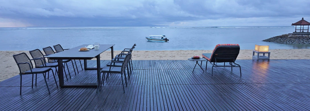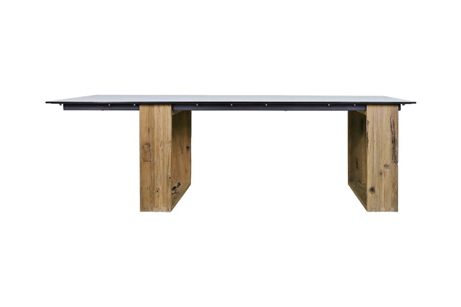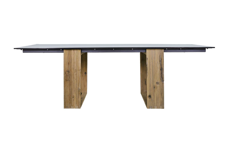 Italian ‘high pressure laminate’ topped, easy-care dining table, available in four colors. Elegant square legs use box-jointed, beautifully reclaimed ‘drift-look’ teak, adjustable to three different positions.