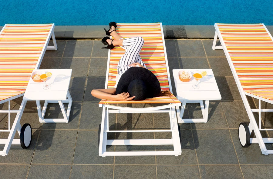 100% powder coated aluminum combined with an elegant design and perfect proportions makes this the ultimate practical choice of lounging companion. The compact size suits commercial pool areas. Available in two sizes.