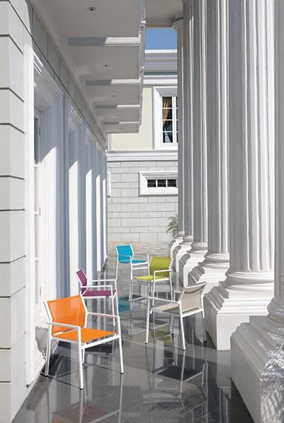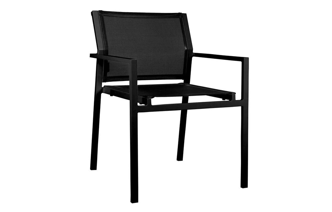 Complete with armrests and a wide, sling-covered seat, this is the most luxurious, comfortable dining chair in the ALLUX collection.