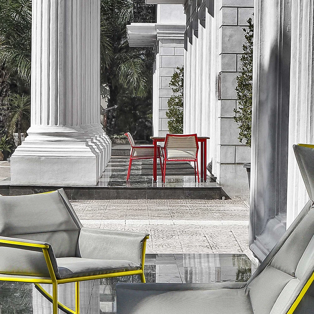 The Andy collection is in fact part of the Mamagreen Industrial collection, but has been modernized with the use of lightweight and durable aluminum. This has been powder-coated with Interpon’s leading technology.