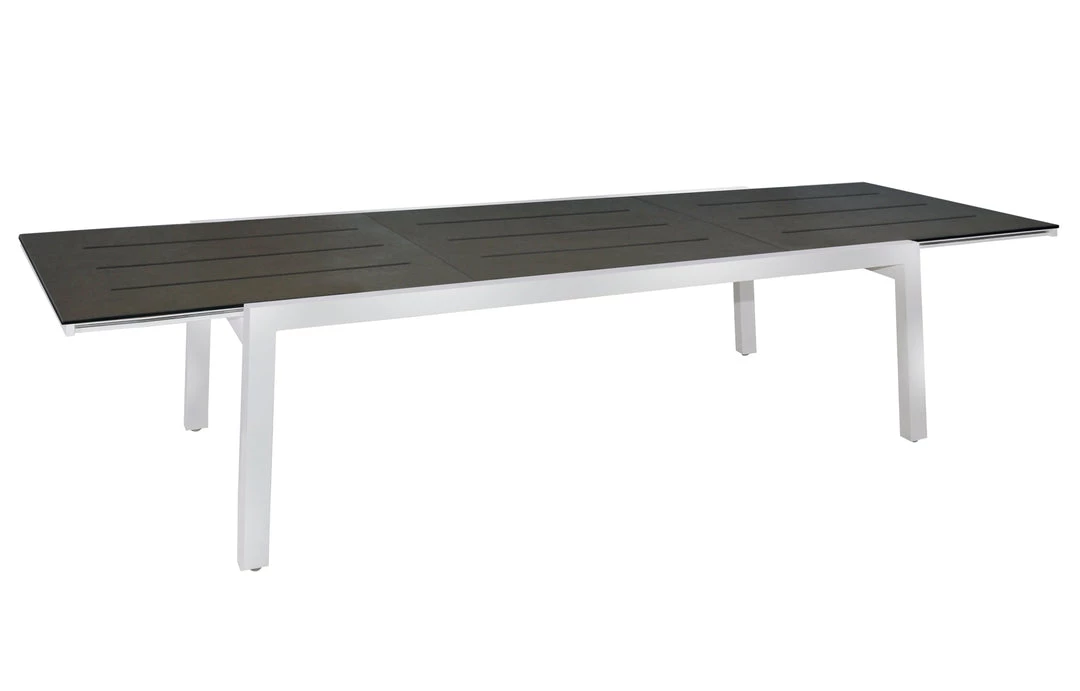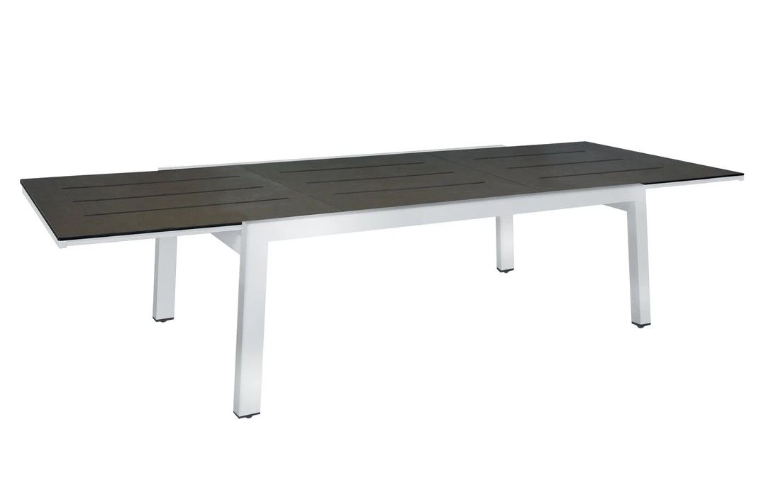Baia ‘high pressure laminate’ extendable table top is combined with a sturdy stainless steel frame. Smooth state of the art mechanism extends the length from 170 to 280cm, and from 230 to 360cm size able to accommodate 12 people more than comfortably in a moment.