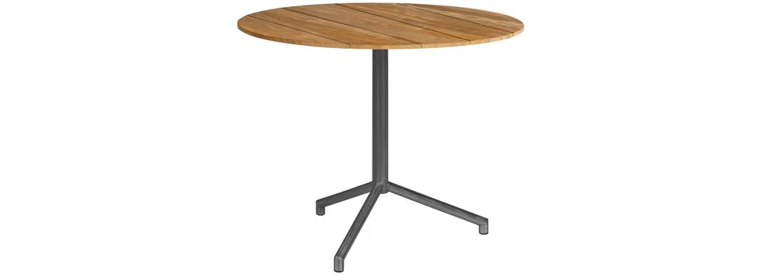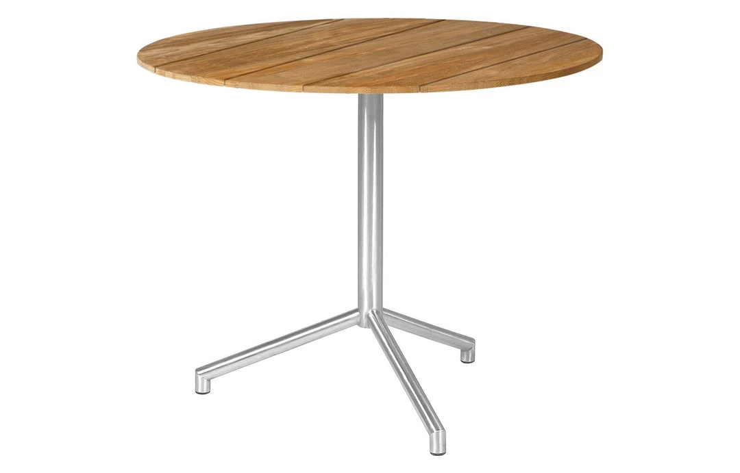 This is the largest round teak topped table in the MAMAGREEN BISTRO range. With three legs and generous proportions it is a very luxurious version of a traditional wood-topped cafe table.