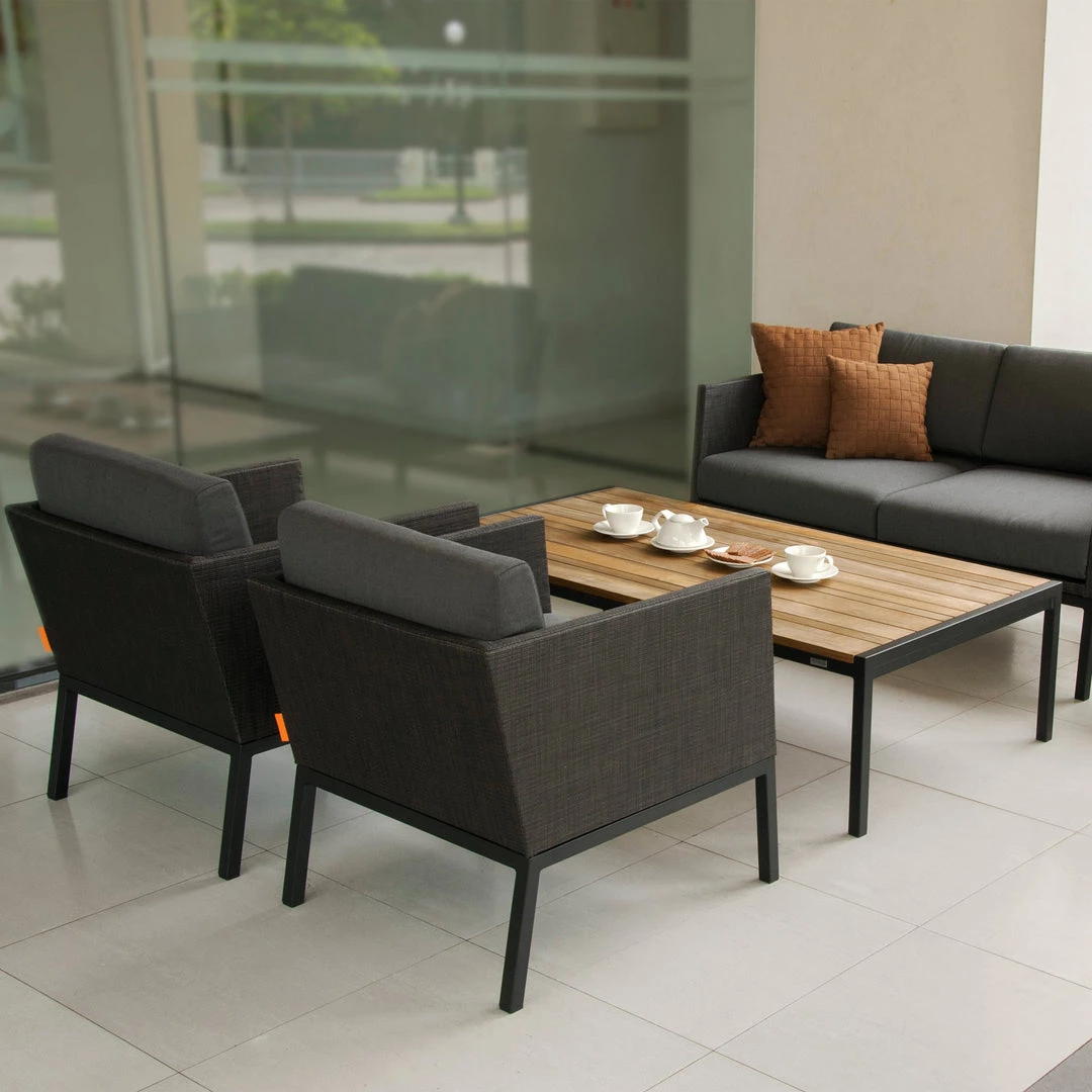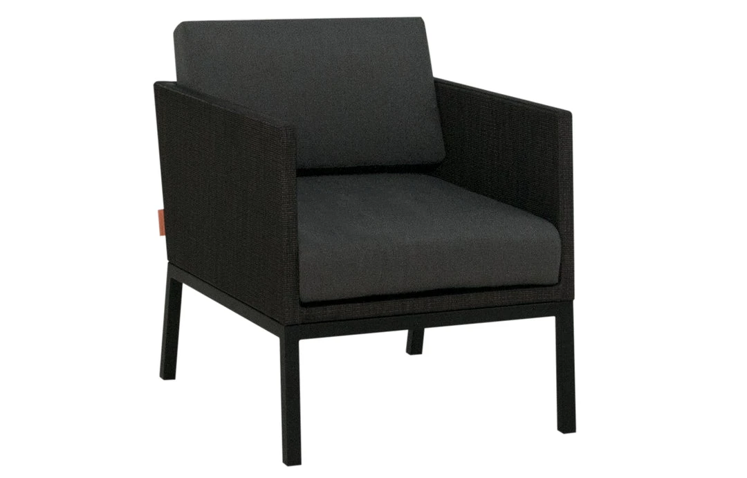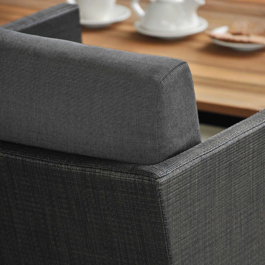 This minimalist, upholstered seat in an angular shape creates real design ambience. Perfect for smaller spaces, and fully upholstered with Royal Black Twitchell® Textilene upholstery.