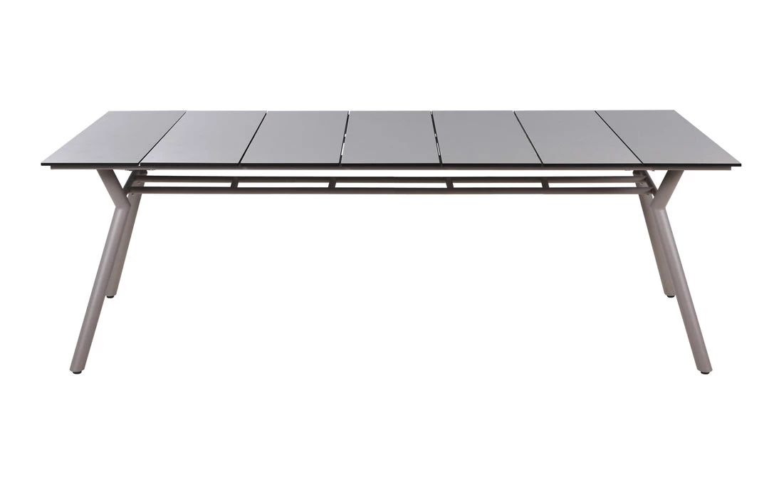 Sophisticated outdoor dining table available in two sizes. Italian ‘high pressure laminate’ top looks stylish and is super easy care, paired with a powder coated aluminum frame.
