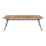 Manda outdoor dining table available in two sizes. Laminated teak textured top is paired with a powder coated aluminum frame for a modern, relaxed yet sophisticated dining table.