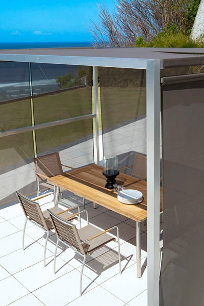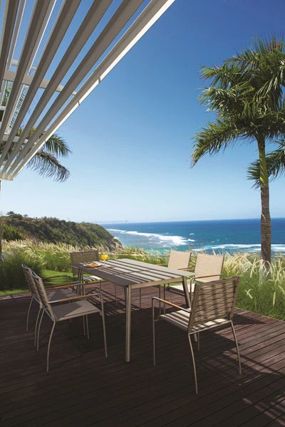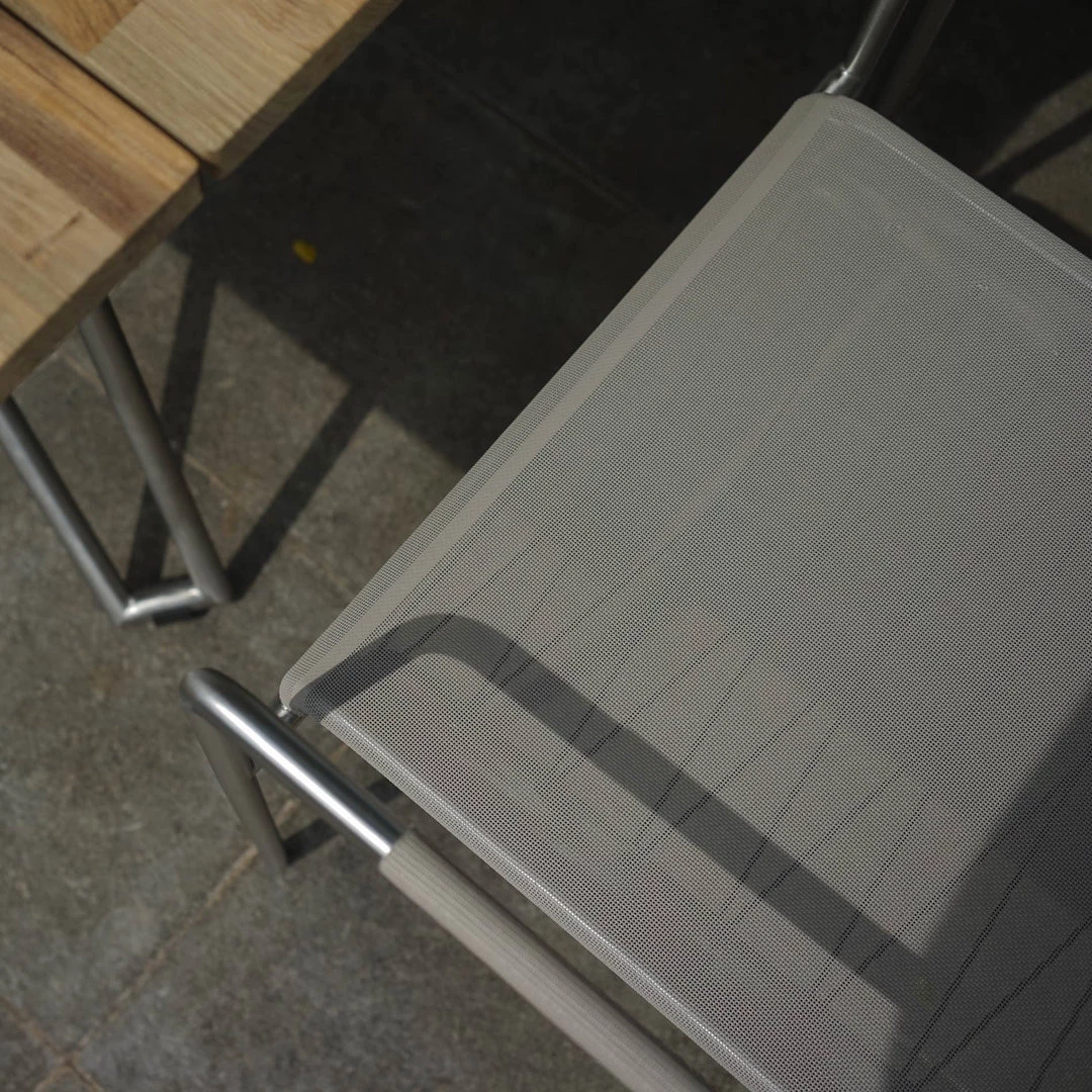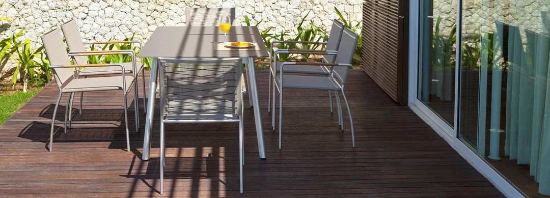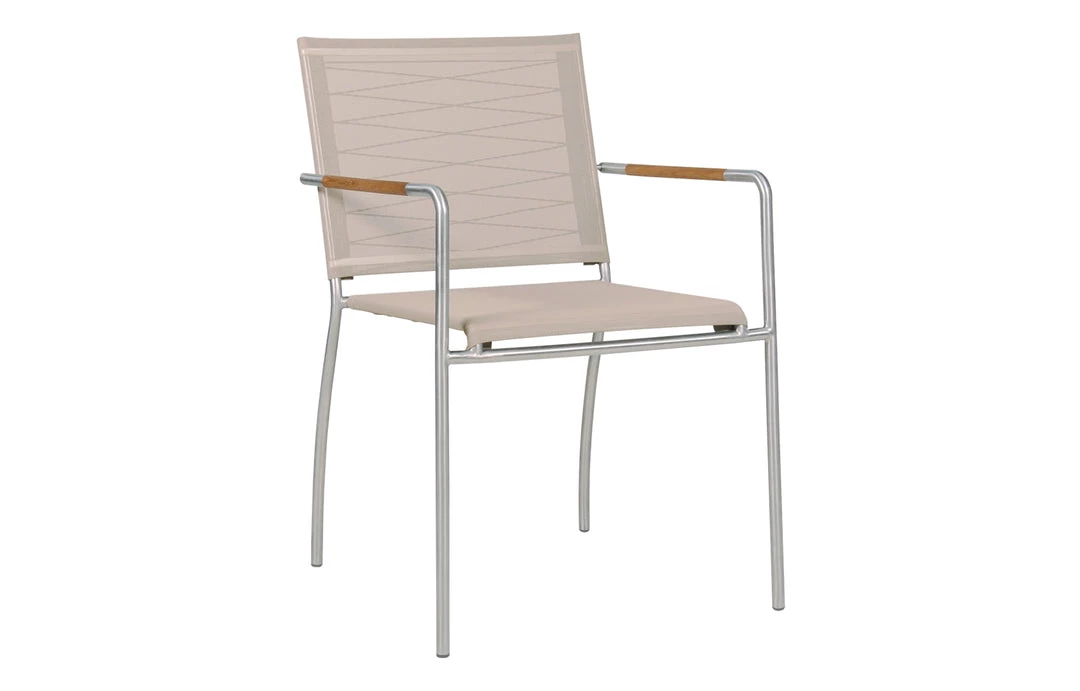 NATUN dining chairs feature body-supporting, UV and tear resistant Batyline® slings; comfort meets contemporary style. Choose a traditional dining chair style, with or without arms, or ultra-modern cantilever. Either black seats with your choice of brightly colored backs, or eco-design (hemp blend) Canatex.