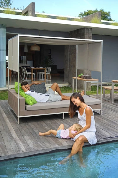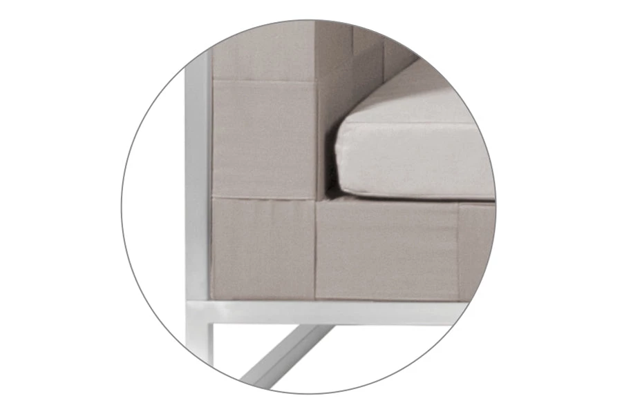 With Canatex hemp-blend quilted upholstery detail, this daybed has a neutral shade to match. Choose from our large range of Sunbrella® for cushion cover, from natural to brights. QuickDryFoam® makes drying off before use unnecessary!