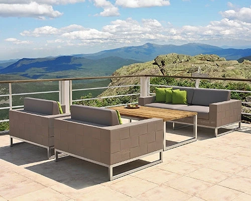 Neutral and unpretentious, it is rare to find premium, fully upholstered outdoor furniture as warm and welcoming. The woven strips of hemp sling have a delightfully natural handfeel and the quilted pattern brings a highly attractive informality to these generously proportioned sofas and daybed. Designed by Vincent Cantaert & Barbara Widiningtias.