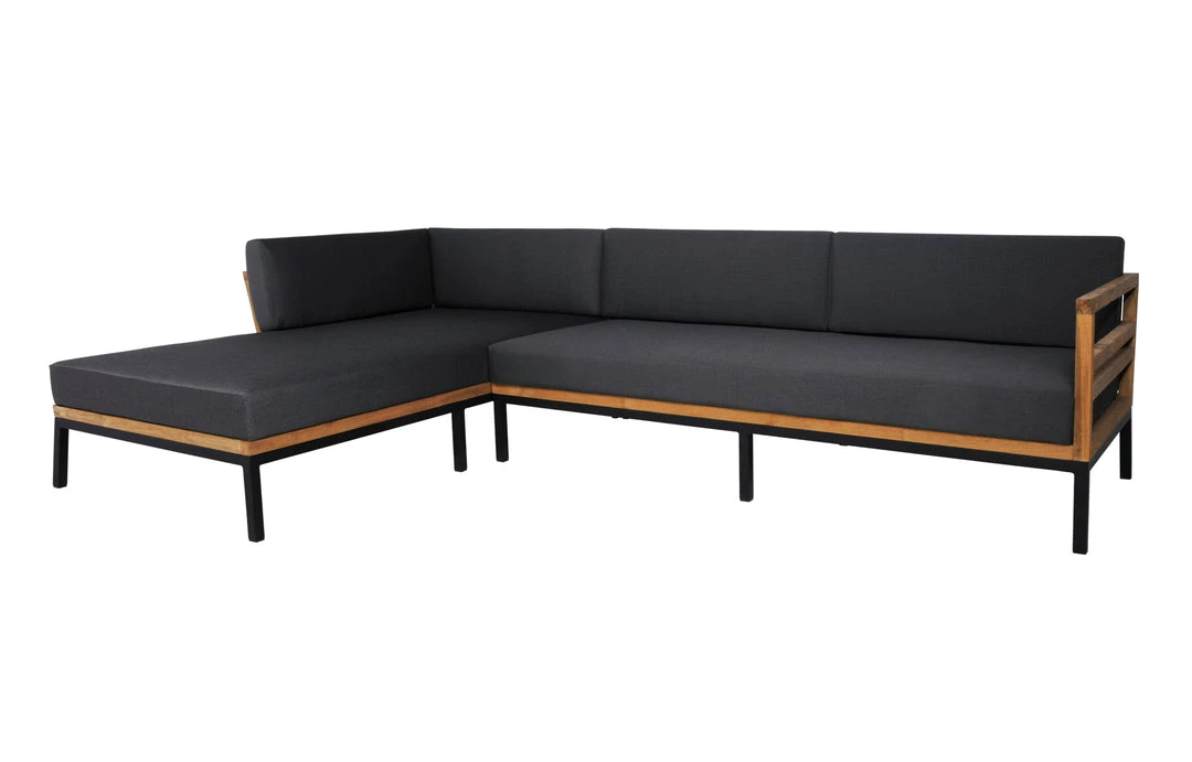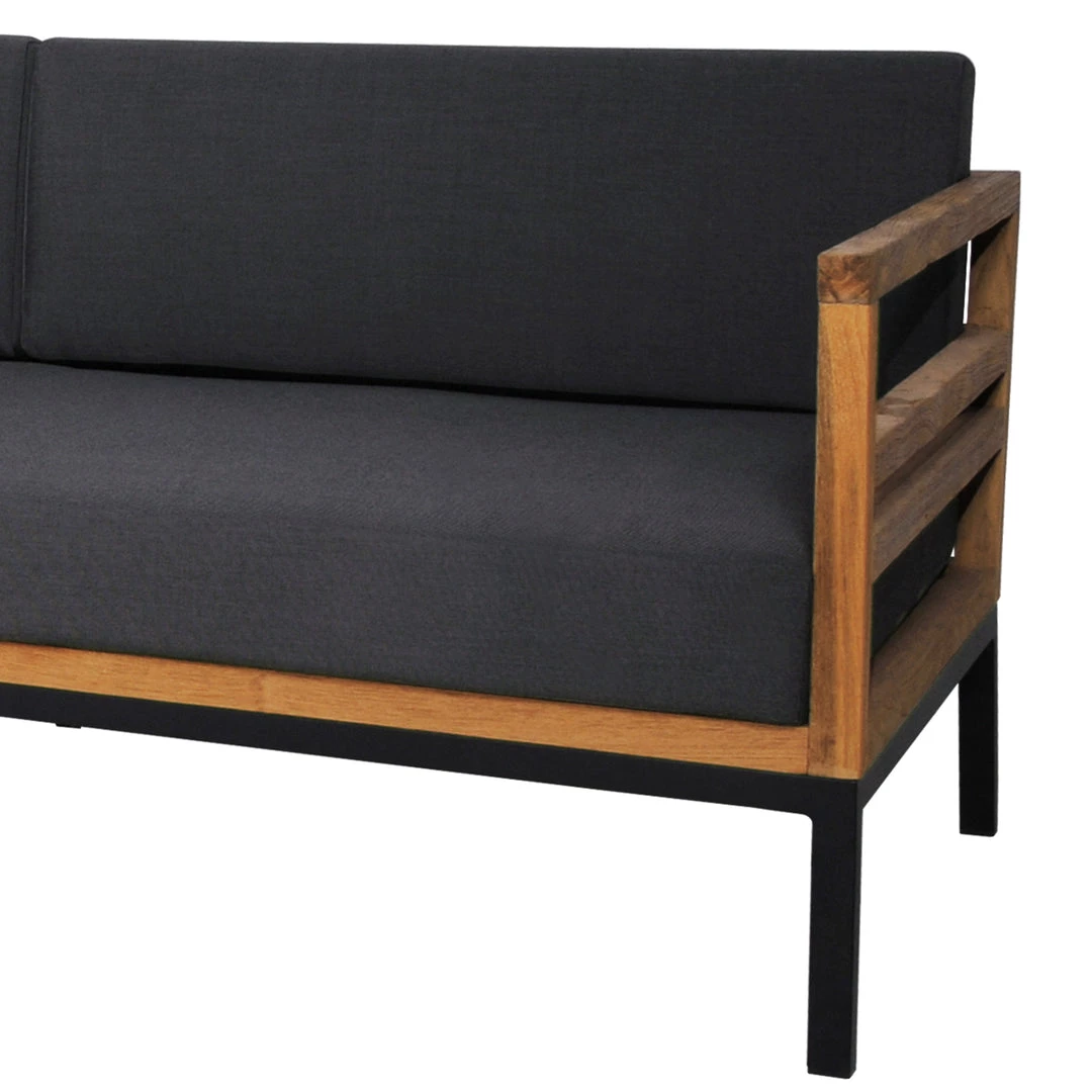 Elegant teak frames, with powder coated aluminum base, and delightfully oversized all weather cushions make this is a favorite in the mamagreen collection.
