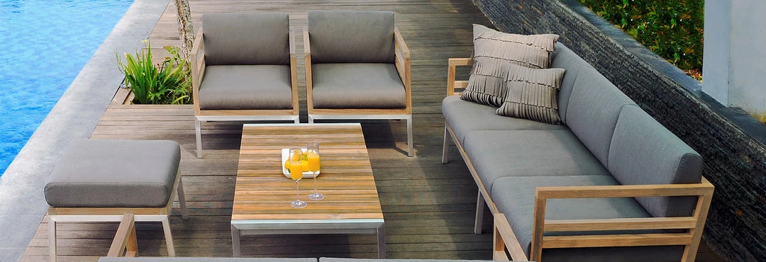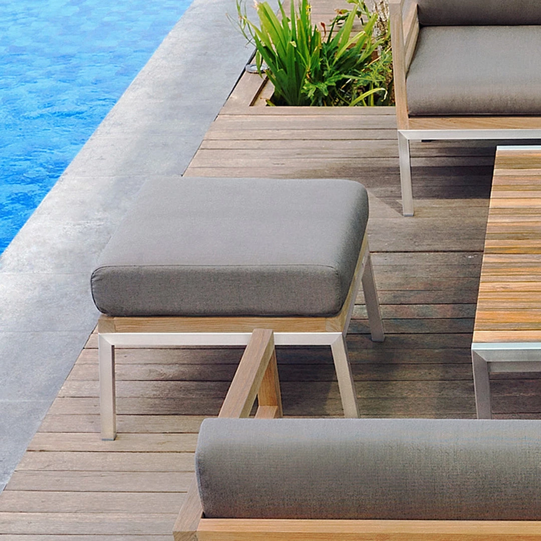 Matches any sofa or lounge in the zudu collection with the same generous all weather Sunbrella® cushion and teak accent.