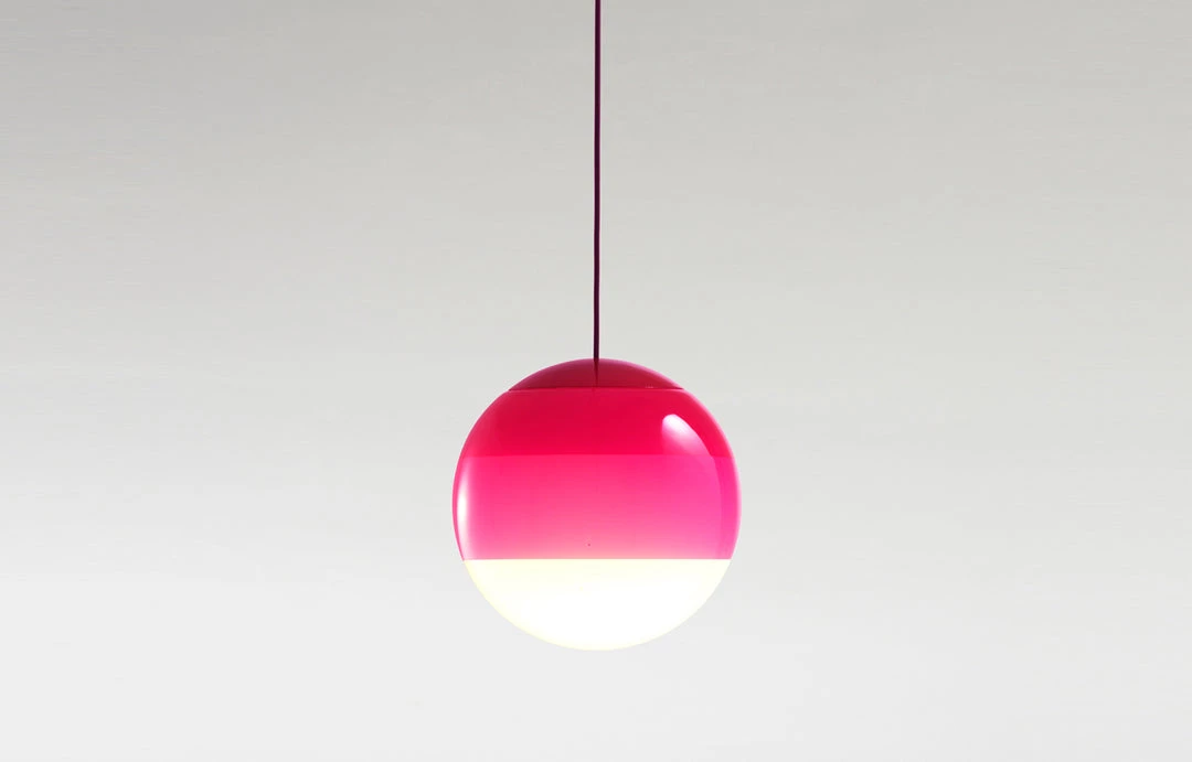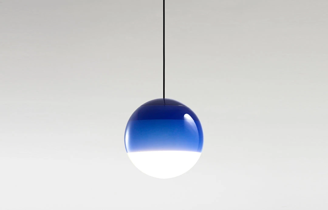 The history of the Dipping Light has only just begun. Marset wasn’t willing to settle for just the two table lamp sizes it has come in so far. Its most poetic light expands its uses and is now offered as a portable lamp, suspension lamp, wall lamp and a new table lamp size –ø20 cm– to bridge the gap between the small and large sizes. The colors are the same, with an expanded model line-up. The new suspension Dipping Light gets rid of everything to keep only the essential, with color taking center stage. When using several lamps to make a composition, the visual effect is mesmerizing. This new version comes in three sizes, with 5, 8 and 12 inches diameters. With the Cluster accessory, it is possible to connect several suspension lamps into a single point of light, offering the absolute freedom to build with light. This accessory helps to illuminate large spaces or create compositions with this collection.