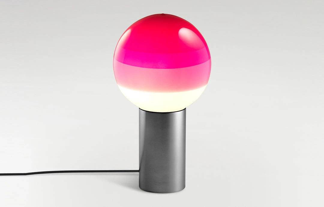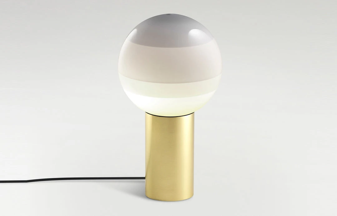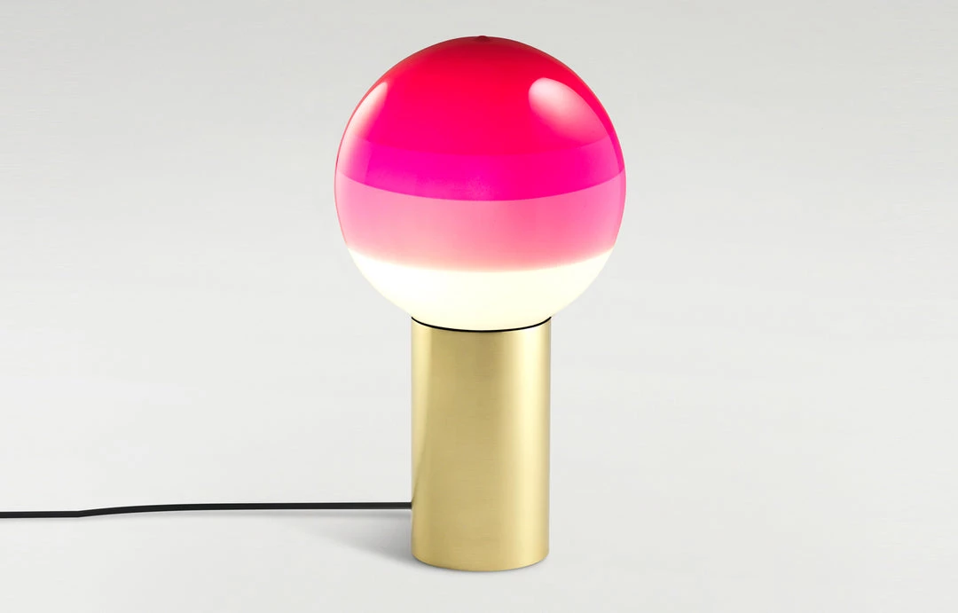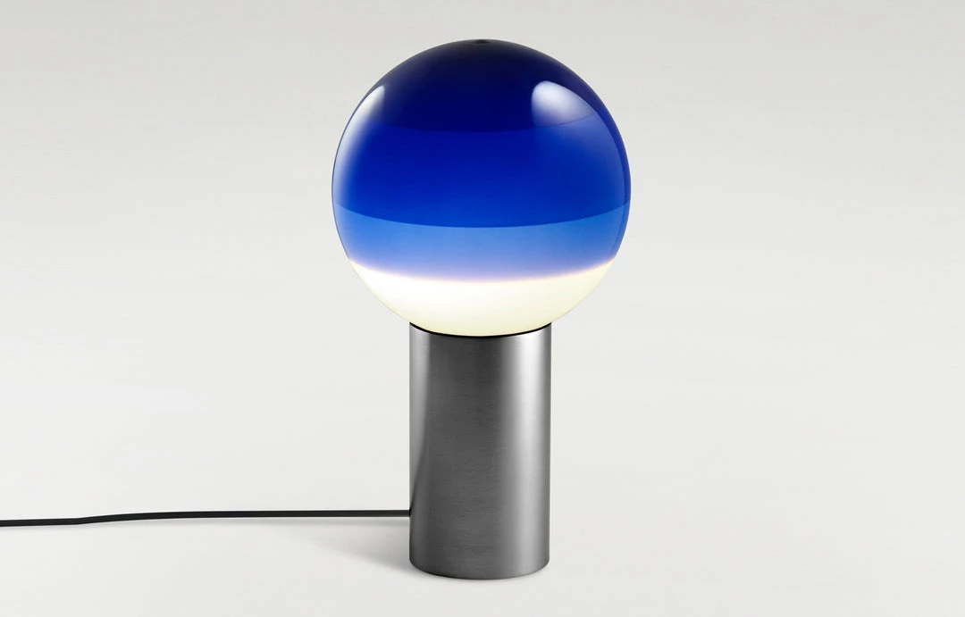 Beyond its function as a lamp, the Dipping Light seeks to excite. When it’s turned on, its different shades of paint sift the light, creating a magical ambient effect. When it’s off, its colored glass sphere is an object charged with beauty, and eye-catching design piece for a shelf, bedside, or table. The Dipping Light was created as yet another experiment – dipping a lit bulb into paint several times – with the end result of this table lamp. The various layers of paint draw concentric circles and capture the light, moderating its intensity. The paint becomes the shade, coloring, and texturing the light. A brass or graphite base is added for support. This artisanal process will make each lamp a unique and exclusive creation.