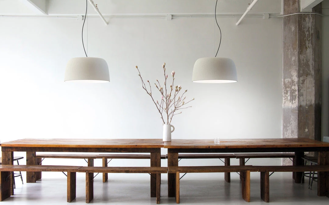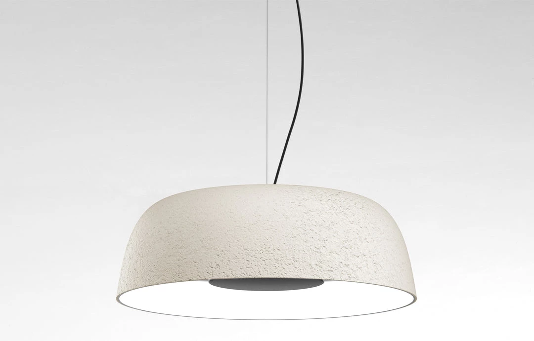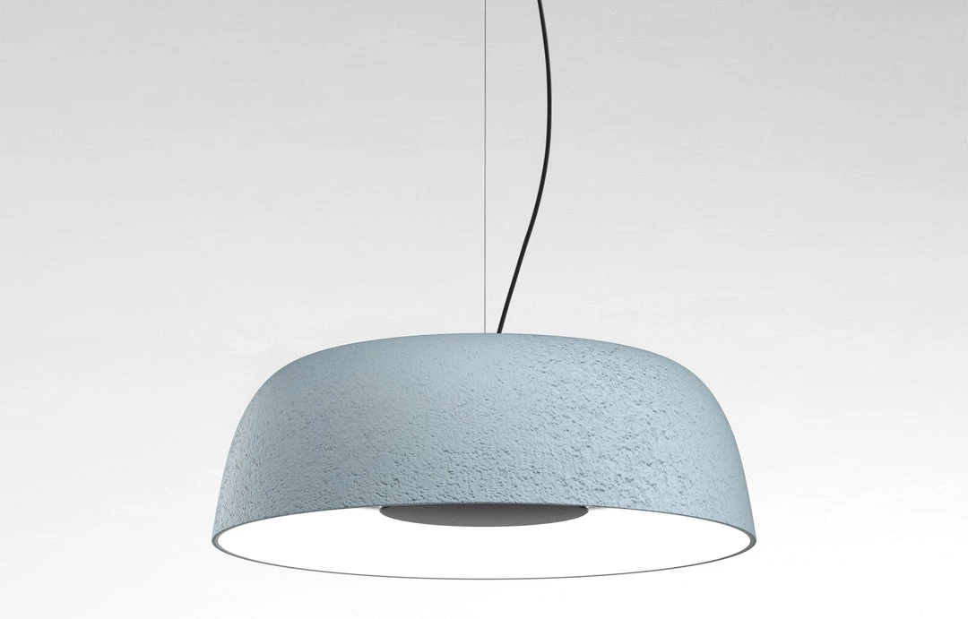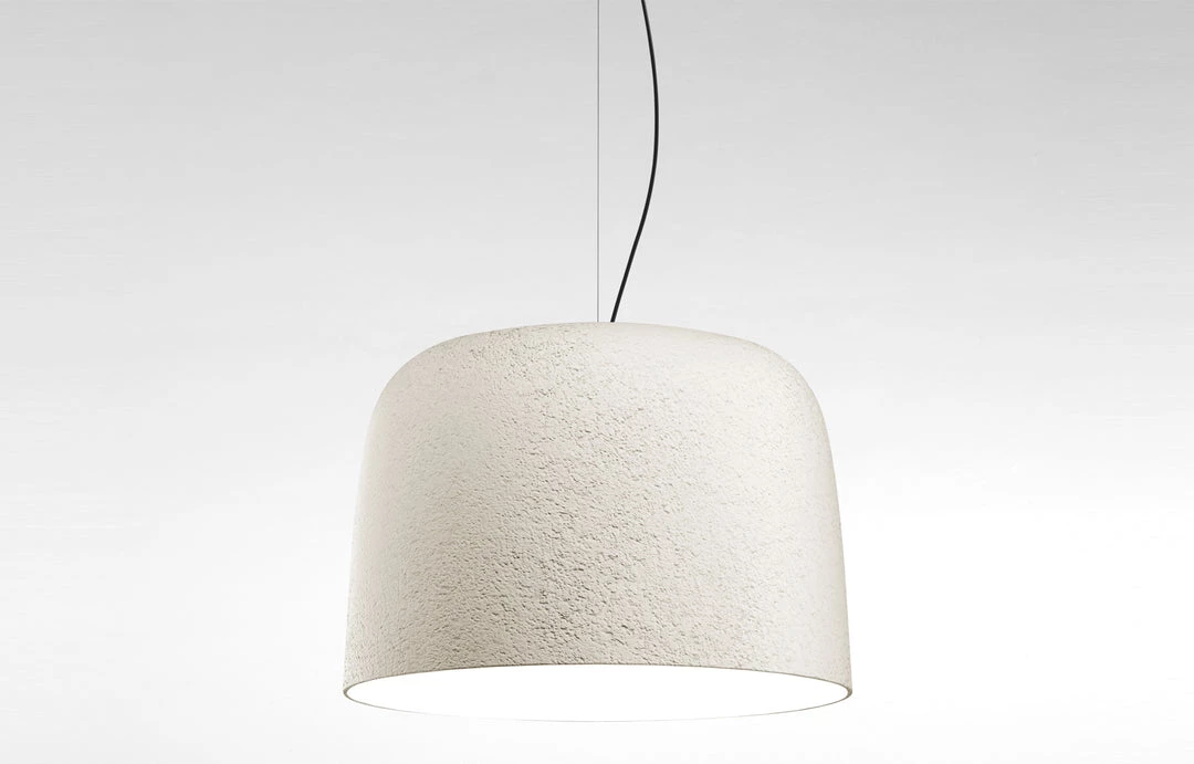Like the echo of a drum, the Djembé collection is designed for repetition, creating musical compositions of light. A bell-shaped ceiling fixture with an exposed interior, Djembé is available in a numerous sizes and bright, airy colors that can be used individually or combined to create a brilliant statement piece. Using a rotomolding technique allowed the designer, Joan Gaspar, to design a fixture with vastly different interiors and exteriors: its outside recalls the texture of a stone, giving off a perception of great weight, emphasized by its volume. In the spacious interior you’ll find a smooth, white space perfect for the reflection of light. Djembé is a lamp designed for use in public spaces that seeks to bring beauty and an unbeatable quality of light.