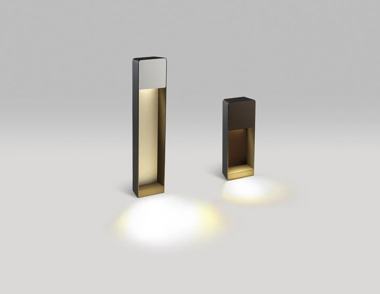 The classic Lab collection is expanding to include two sizes of bollard and a slim wall lamp. These new designs bring a bit of texture and formal simplicity to outdoor spaces. With this wall lamp version, an aluminium structure surrounding the fixture creates an interior space where light and materials interact, with the soft LED lighting playing off sheets of painted metal or dark iroko wood. The beauty of this collection lies in how the light interacts with the different materials. The Lab collection continues to conceal the point of light, but its illumination – in every version, including the original – will be more powerful, with a greater presence.