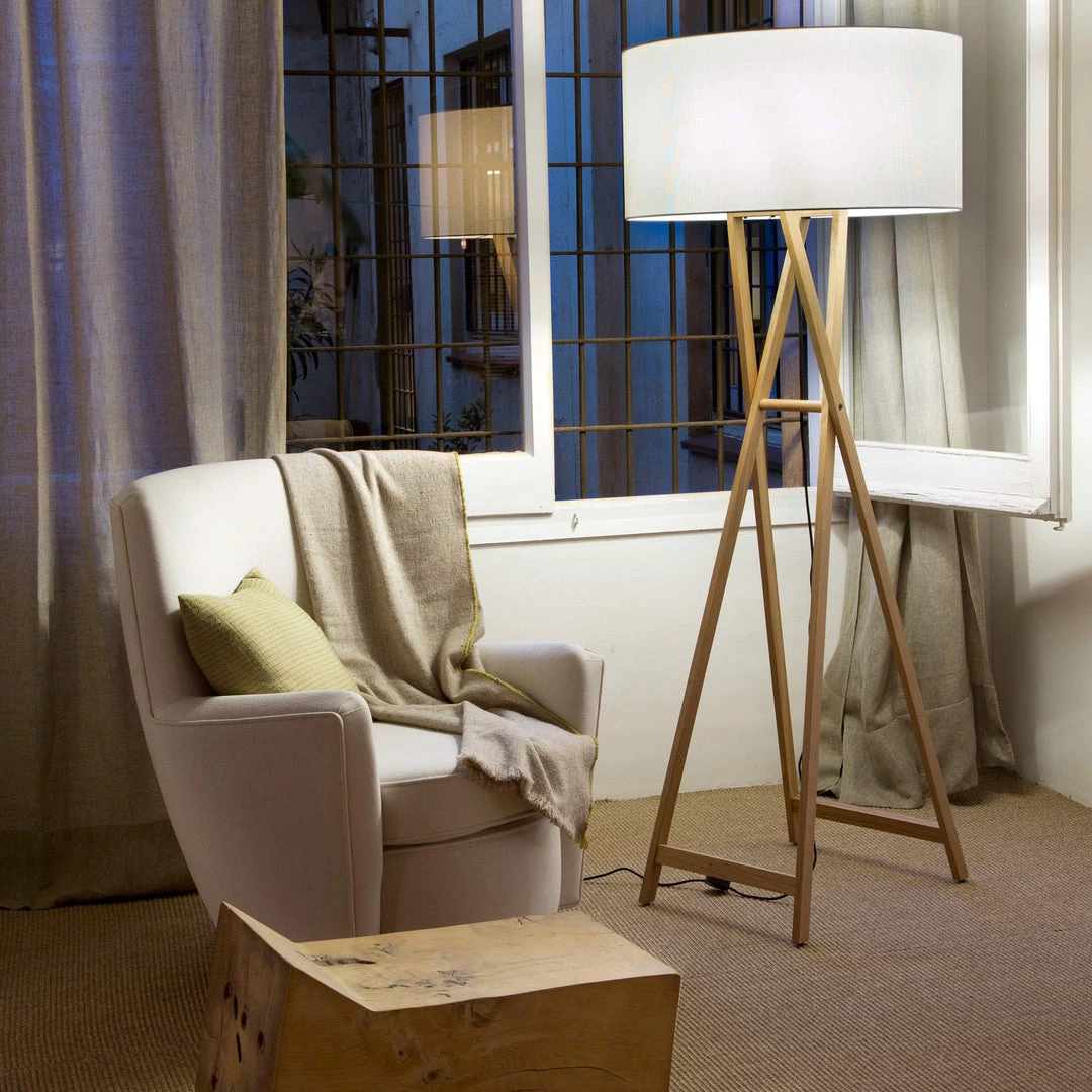 Everybody likes a warm, comfortable light. This is exactly what the new Cala lamp achieves by means of the combination of its light but resistant structure in oak wood, inspired by the classic artist’s easel, and its pearl-white polyester shade. It is available in three sizes – 140cm, 165cm and 180cm. Next to a sofa or an armchair is the ideal place for the smallest version, whereas the other two models have been conceived as general lighting in more open spaces.