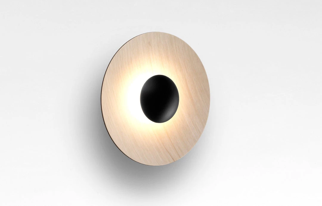 Wood is a great ally of cozy lighting. It is a material that is hard to mold, a challenge that the Ginger collection neatly resolves. The combination of sheets of wood, paper and resins pressed together under high pressure achieves a laminate that appears almost entirely flat, which discreetly lights up spaces with indirect light.The Ginger collection has been expanded over time to provide solutions to different lighting needs, and is available in pendant, table, wall, and floor lamp versions. This year, we are adding a new, smaller suspension lamp, a portable table lamp, another version of wall lamp with a movable arm, and three different sizes of flush-mount wall lamps. These new wall lamps, which are formally extremely simple, are manufactured in three sizes. They also come in a set of two or three pieces to meet the qualities and needs of the space. The inside of the lampshade is offered not only in white but also in an oak and wenge finish, yielding different shades of light..The new wall lamps, which are formally extremely simple, are manufactured in three sizes. They also come in a set of two or three pieces to meet the qualities and needs of the space. The inside of the lampshade is offered not only in white but also in an oak and wenge finish, yielding different shades of light.