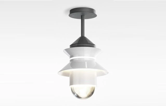 Inspired by the lanterns found on fishing boats, this collection of customizable outdoor lamps allows you to create multiple compositions. Users can choose how many shades to place on the diffuser, along with their order, position and direction. Available with white, grey, or mustard-colored shades, this interplay of combinations yields a rich array of direct or reflected light.