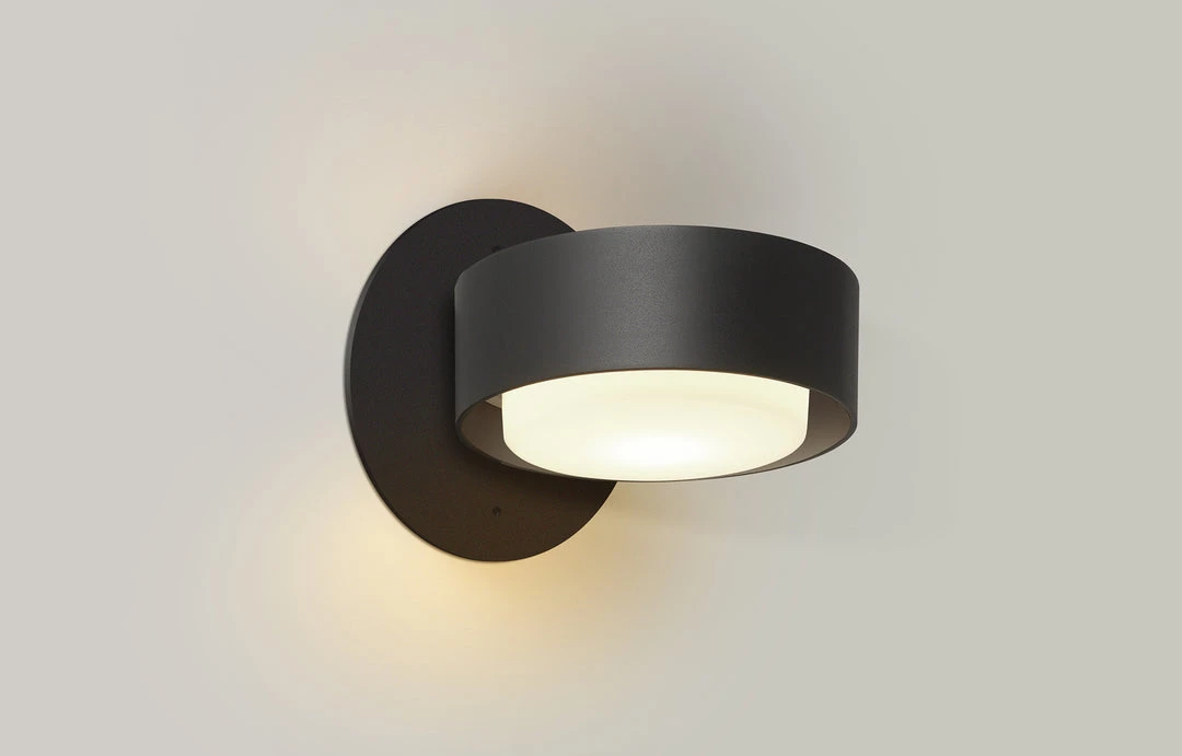 With the idea of expanding possibilities for the outdoors, the new Plaff-on! collection implies a change of direction in its lighting. The new outdoor wall version —6,2 inches in diameter— features a perpendicular mount to project the light downward while still allowing light to flow smoothly through the open top. As with the standard Plaff-on!, the blown-glass diffuser of the outdoor versions seems to float, detached from the aluminium ring that surrounds it. Its light filters both downward and upward in a luminous halo, exuding simplicity and utility.