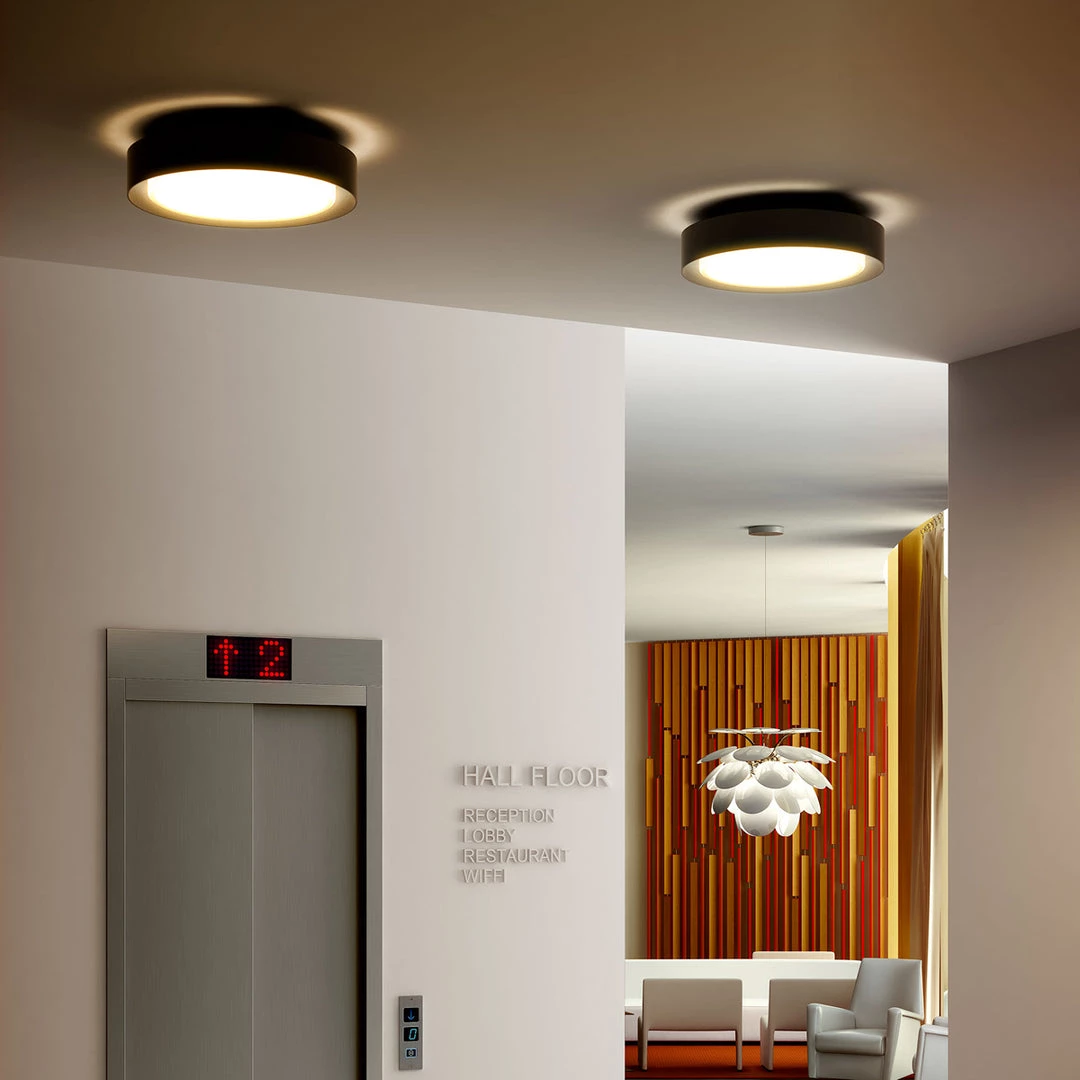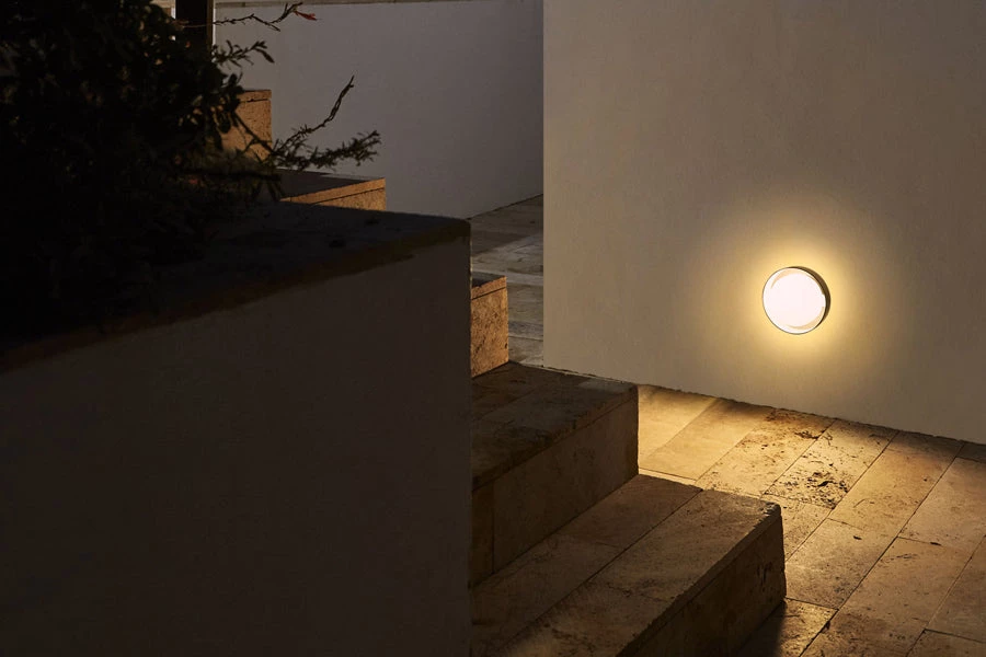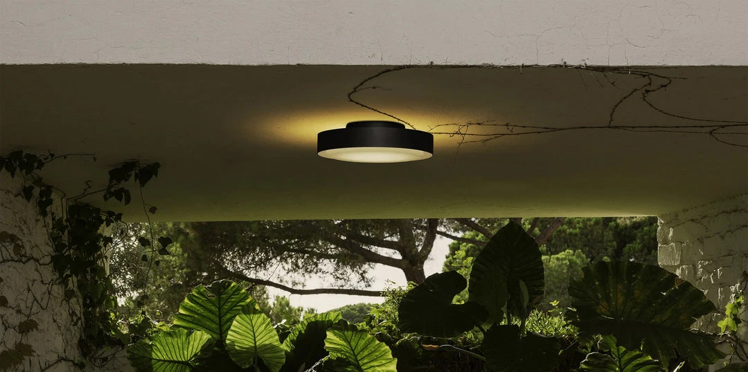 With the idea of expanding possibilities for the outdoors, the new Plaff-on! collection comes in two new sizes —13 and 20 inches in diameter — and two new designs that imply a change of direction in its lighting. On the one hand, the new outdoor wall Plaff-on! —6 inches in diameter— features a perpendicular mount to project the light downward while still allowing light to flow smoothly through the open top. On the other hand, now the Plaff-on! comes in a new bollard version as a step light or to be immersed in a garden. As with the standard Plaff-on!, the blown-glass diffuser of the outdoor versions seems to float, detached from the aluminium ring that surrounds it. Its light filters both downward and upward in a luminous halo, exuding simplicity and utility. A good design is one that endures. So it is with Plaff-on!, a lamp that has been illuminating walls and ceilings for almost ten years. Its hand-blown white glass diffuser appears to float, detaching from the ceiling and the circumference that surrounds it, and its light filters upward to create a luminous halo. It exudes simplicity and it’s very useful, so much so that there was a striking need to have this kind of lamp for exteriors as well. The Plaff-on! outdoor collection offer the same features as the indoor version but suitable for wet locations, making it perfect for bathrooms as well. Indoors, outdoors, with or without signage, the Plaff-on! now offers multiple options in one lamp that can now conquer the outdoors as well.