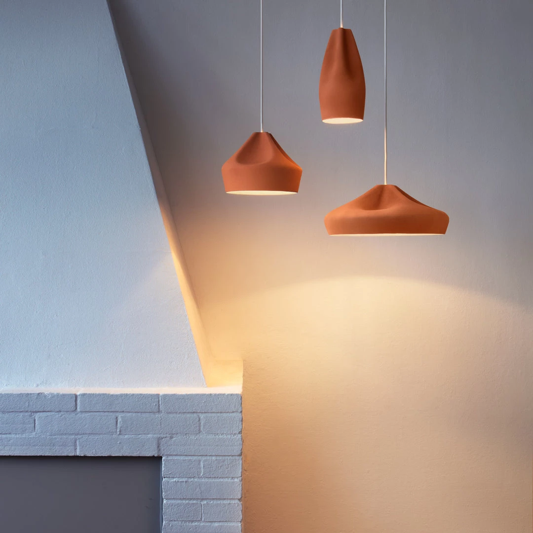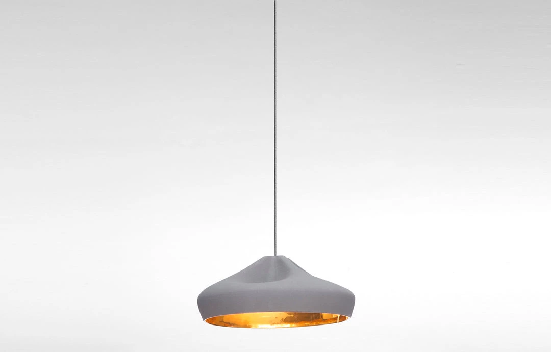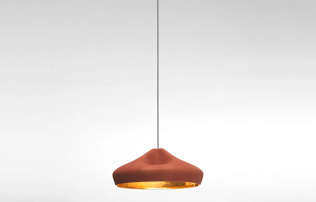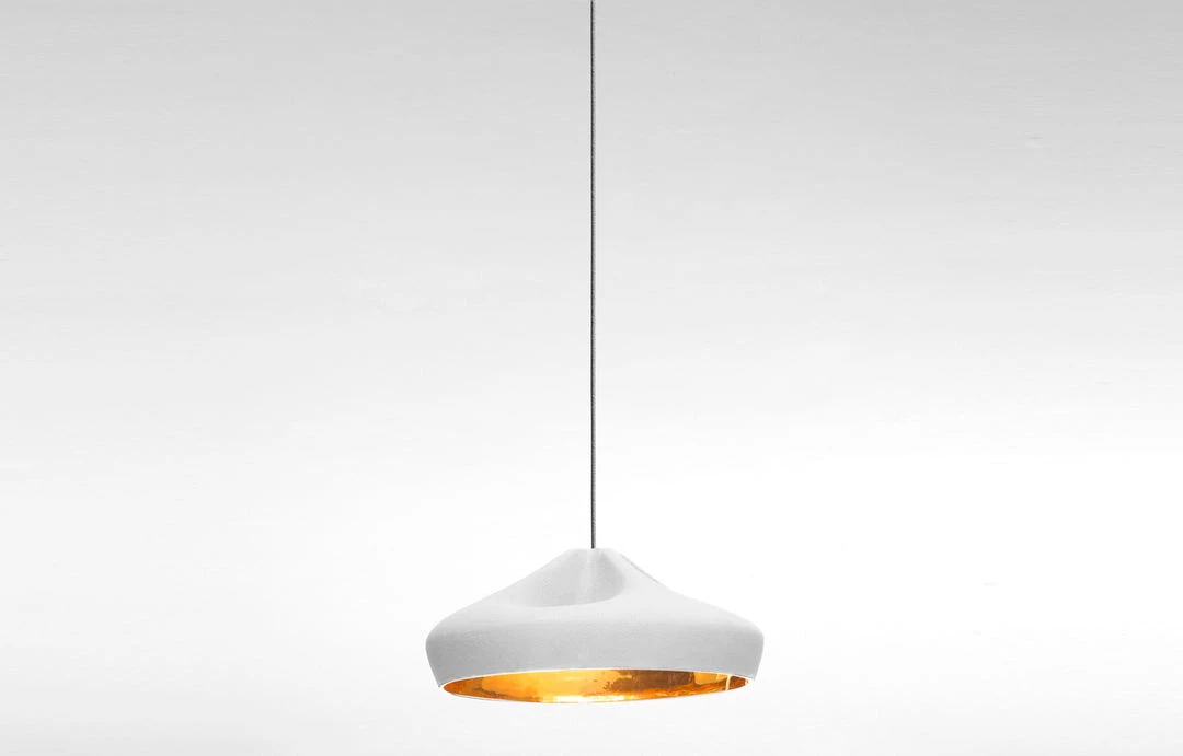 The idea behind the Pleat Box is a sophisticated combination between a digitally designed crease in a piece of cloth and a silhouette that is applied to a ceramic base. The outer part of the lamp is offered in white ceramic, black, terracotta, and grey– the direct result of recycling different enamels. The interior is available in brilliant white enamel, which enhances the luminous light from the lamp, or 24k gold, which generates an extremely warm light. The Pleat Box collection is now available with an integrated LED technology, which projects indirect light and prevents glare.
