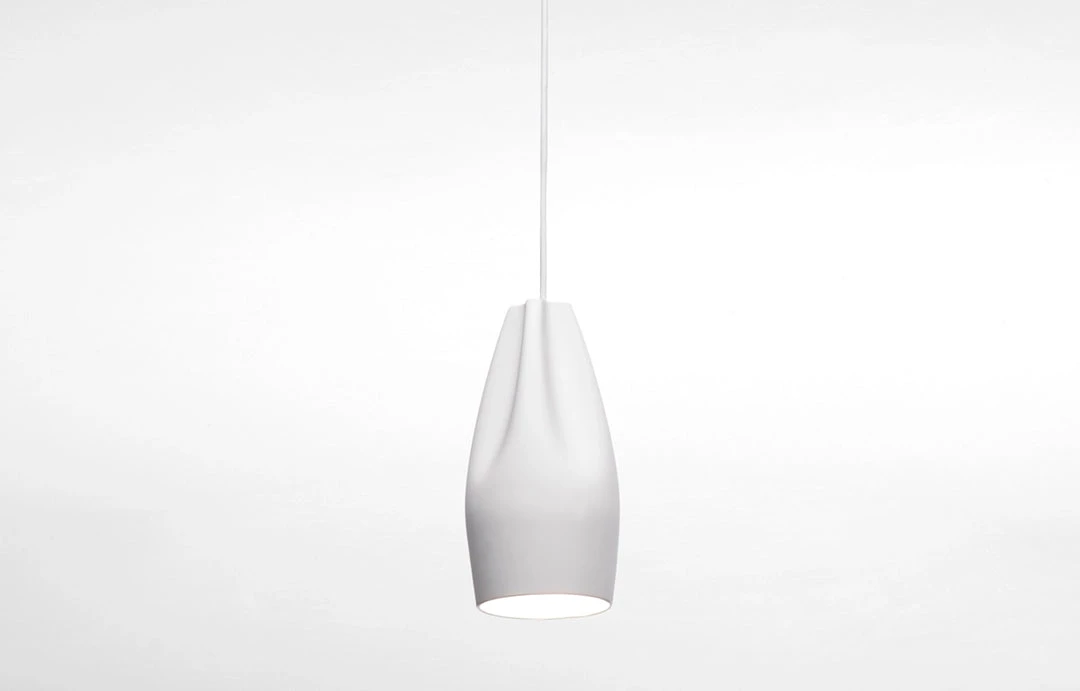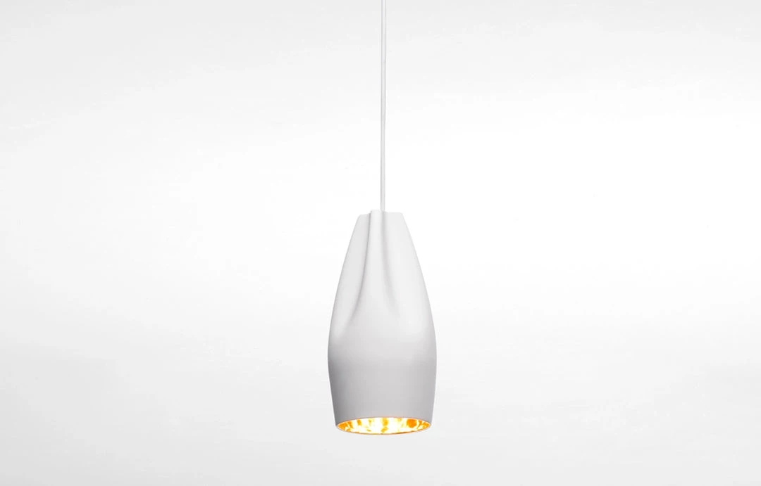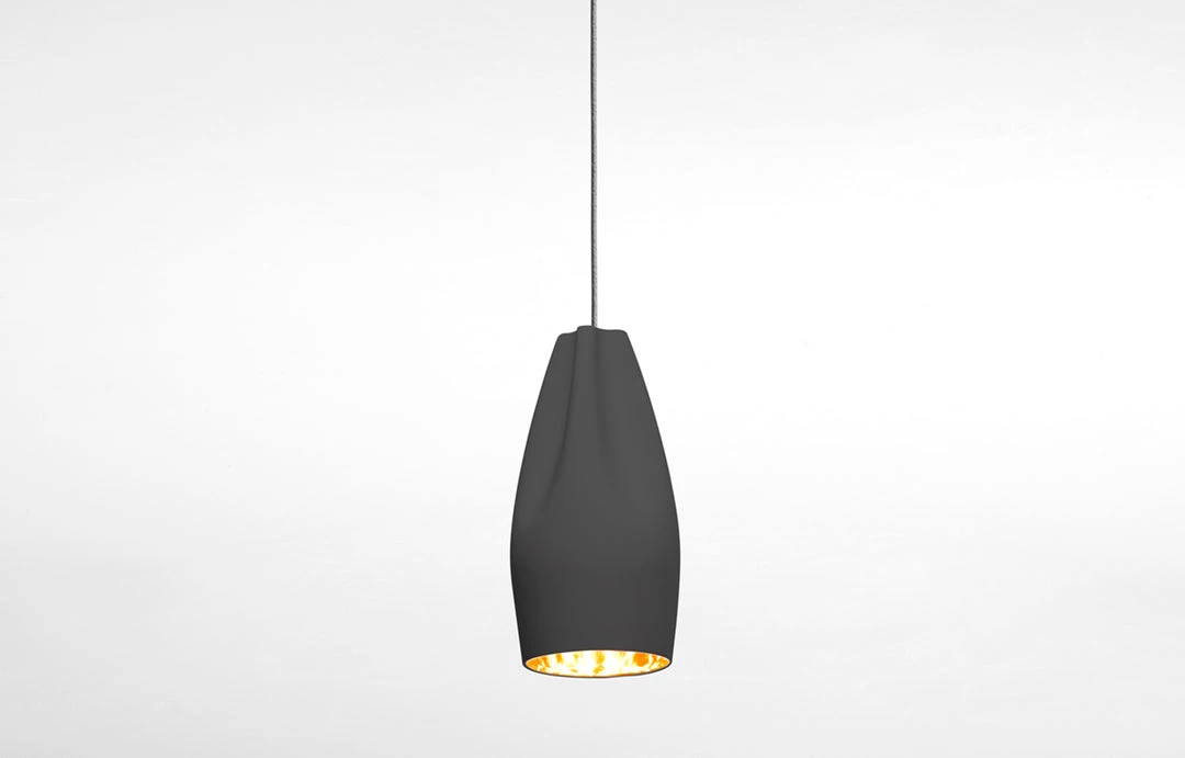 The idea behind the Pleat Box is a sophisticated combination between a digitally designed crease in a piece of cloth and a silhouette that is applied to a ceramic base. The outer part of the lamp is offered in white ceramic, black, terracotta, and grey– the direct result of recycling different enamels. The interior is available in brilliant white enamel, which enhances the luminous light from the lamp, or 24k gold, which generates an extremely warm light. The Pleat Box collection is now available with an integrated LED technology, which projects indirect light and prevents glare.