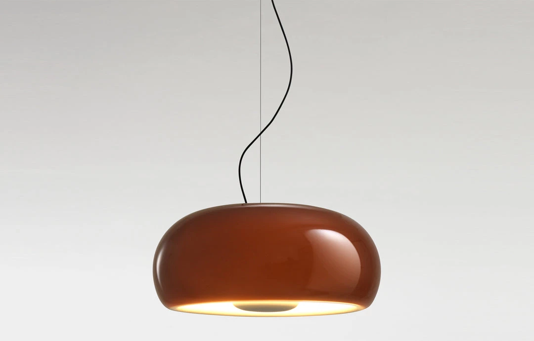 At first glance, Vetra could be no more than a traditional, old-fashioned, blown-glass lamp, but turning it on yields a surprise. Joan Gaspar uses a completely closed glass diffuser as a reflector, and creatively places the light source outside -instead of inside- the shade. The Vetra gives off more light than one would expect, without glare. Much of the light is directed downward, and the rest is filtered toward the inside of the shade, subtly illuminating it. Like an echo multiplying the light, when it’s on, its entire outline is drawn out and seems to come alive. This collection is offered in white and amber, a color that emphasizes even more its relationship with the light. A contrasting layout in which the lamp proper becomes more visible and its light – sheltered by these tones – warmer. This collection was designed in table, suspension and floor models in different diameters (8”, 13” & 17” ). In the table and floor versions, the stem is divided into two unequal parts, a feature that breaks the symmetry, adds beauty and elegantly provides an outlet for the cable.
