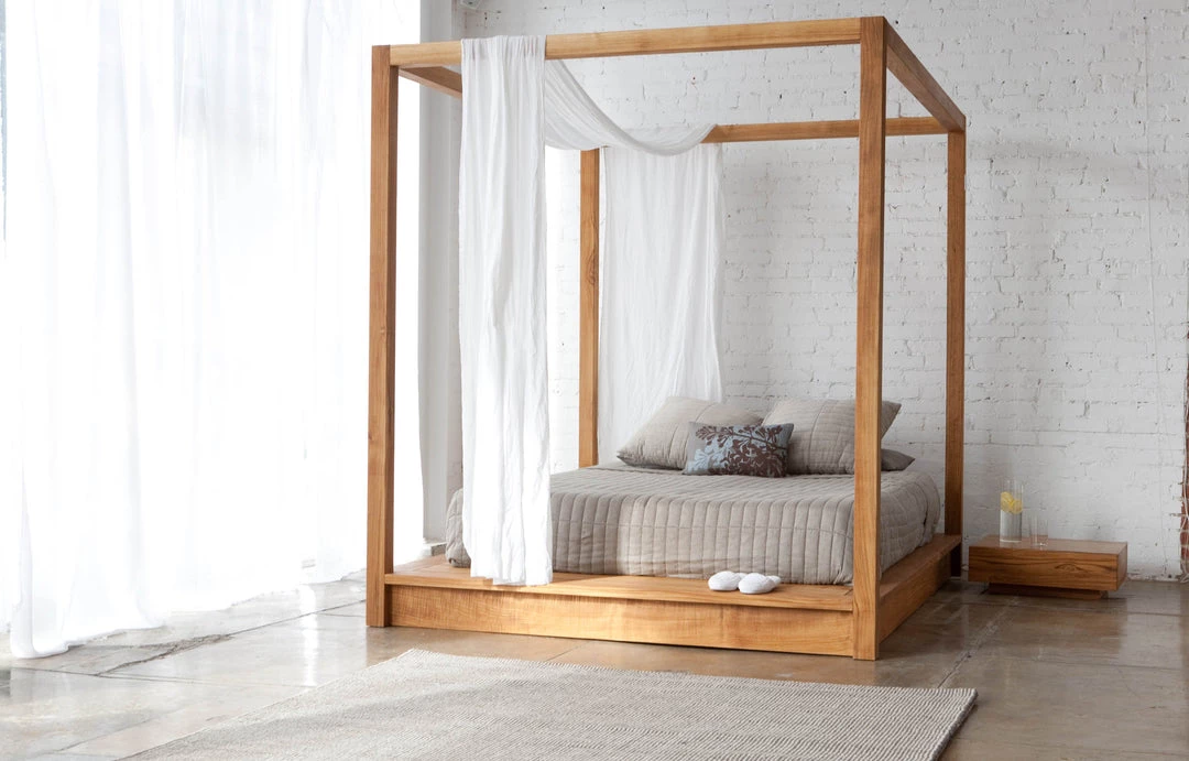 Designed to create a space that feels both flowing and intimate, the Canopy Bed offers a spacious but secluded place for rest and relaxation—indoor ble in Queen and King sizes, the Canopy Bed is formed from naturally weather resistant teak, ethically and sustainably harvested from certified forests in Indonesia. Day or night, the PCH Canopy Bed combines architectural inspiration with easy versatility to create a rich and elegant sleep experience.