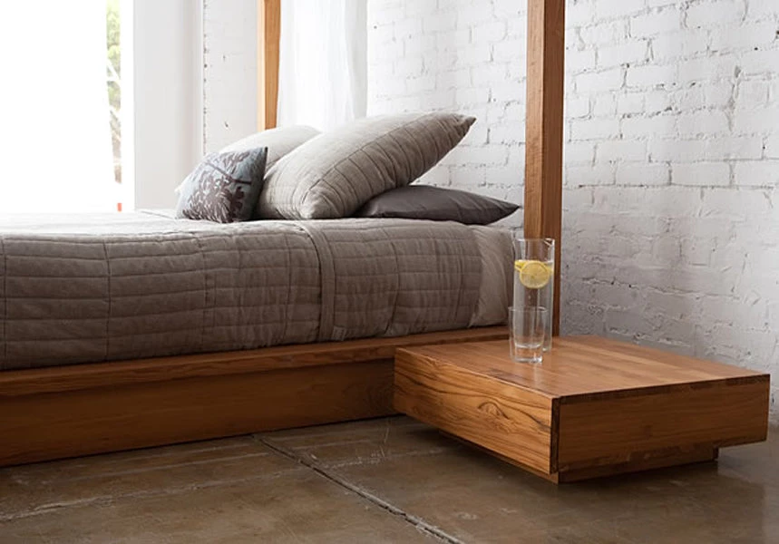 The Indoor/Outdoor Canopy Bed captures the California Modernism with its clean lines and organic materials. Inspired by the celebrated post-and-beam homes of the Case Study Program, a solid teak platform and canopy construction is made with indoor / outdoor living in mind, integrating stainless steel hardware and a selection of natural oil finishes.