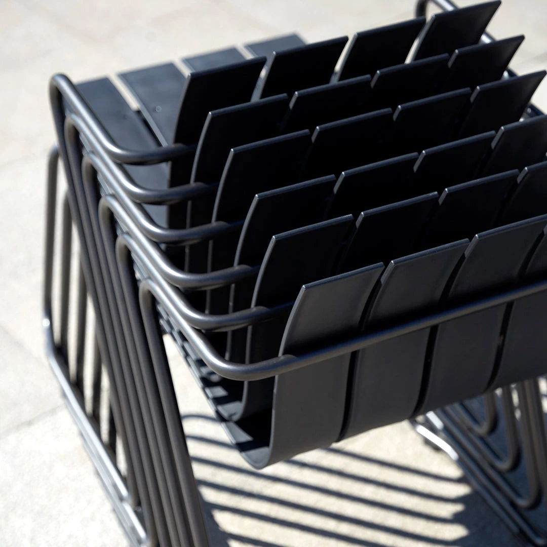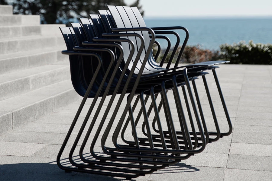 The Ocean Collection is a re-imagined table-and-chair collection (originally designed in 1955) in ocean waste plastic, combining innovative solutions to prevent pollution of the world’s oceans – with one of the 20th century’s most renowned designers, Nanna Ditzel. The series is characterized by its light structure with repeated slats and metal frames, made and tested for outdoor use. The ocean waste plastic and recycled plastic (PP) honours the UN Sustainable Development Goals of protecting “Life Below Water” (SDGs 14) and “Responsible Consumption and Production” (SDGs12) and “Partnership for the Goals” (SDGs 17) The Ocean Collection is designed for disassembly, meaning that the design allows each component in its purest form to recycle into new production circles.