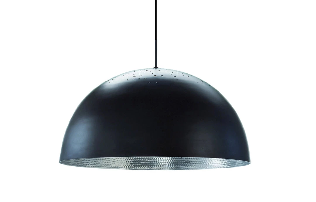 The Mater Shade Light Pendant is designed by the Danish architect duo Space Copenhagen. The ornamented structure on the inside is hand hammered and the upper lace pattern creates a warm and beautiful glow around a room. The soothing form makes it timeless and versatile. Shade Light is hand crafted in a small Indian workshop and comes in two different sizes and finishes.