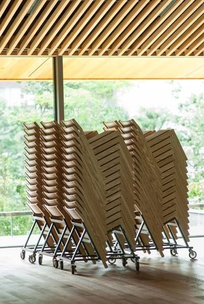 Seminar KVT2 followed its little brother Seminar KVT1, when the customers wanted to have a stackable version of this simple and well-proportioned chair. Seminar KVT2 can be equipped with a linking device, seat and back upholstery, acoustic plate underneath the seat and even a hymn book holder. It fits into different environments due to its simple forms and silent design.