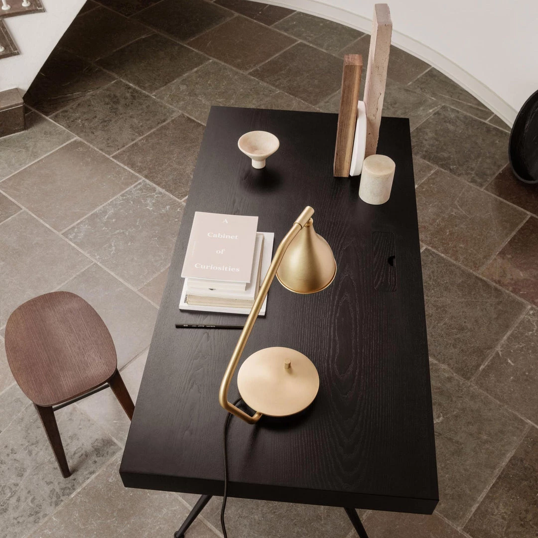The NY11 Stool has a frame hand-crafted from solid oak and a seat of laminated oak veneer. The leather edition can be upholstered with premium leather or vintage leather from Sørensen Leather. The NY11 series is inspired by traditional Danish school chairs designed throughout the twentieth century.
