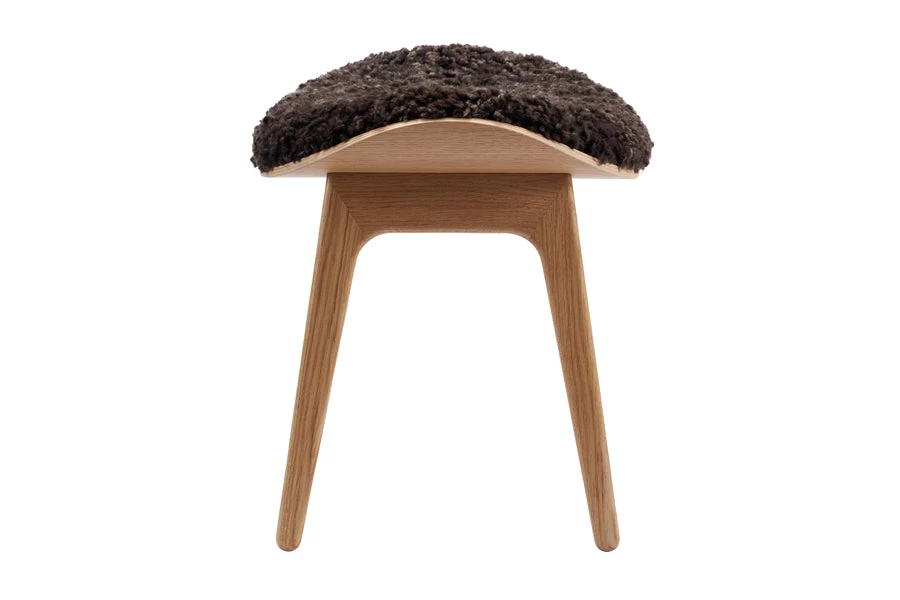 Elephant Stool is a minimal piece of furniture, based on the signature aesthetics of the Elephant Chair. The stool suits a wide range of purposes, functioning both as a footrest for the Elephant Chair and as a lounge stool on its own. Elephant Stool comes with a seat of moulded oak veneer, resting on a wooden base of massive oak. The stool is available with different upholstery options.