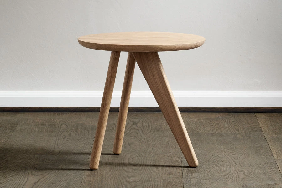 Fin Side Table is a minimal furniture piece, designed with the intention to fit into many different interior settings. Using known shapes and components from our NORR11 collection the table has references to our classics and is designed to fit well with our Mammoth and Elephant collection. Fin comes with a table top of solid oak with round edges, making it paper thin seen from one angle and solid from another. The table has two turned oak timber sections, contrasted by a fin-shaped leg of solid oak.
