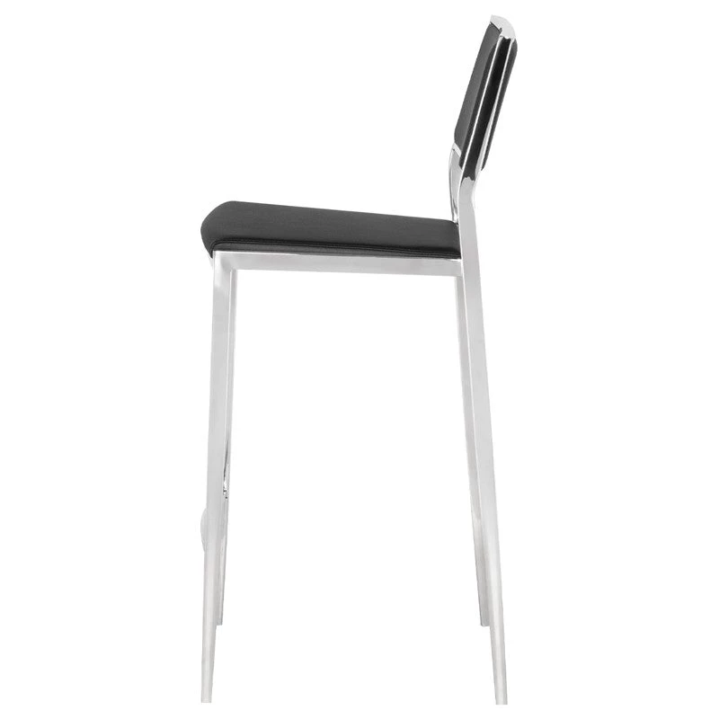 The Aaron counter stool is an alluring combination of stainlessßsteel and Naugahyde. The Aaron counter stool is clean, versatile, contemporary, the geometric frame provides comfort with a streamlined elegance.