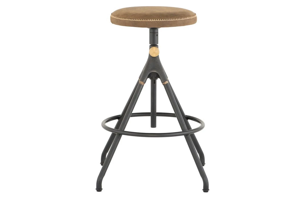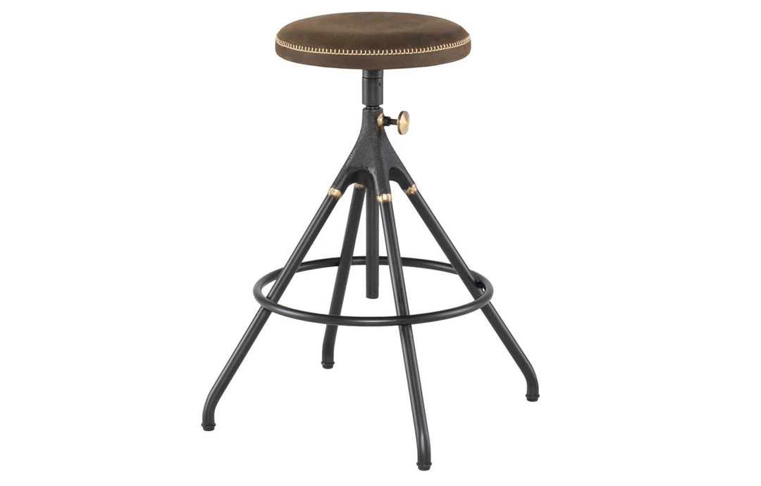 The Akron counter stool fuses a cast-iron body, contrast-stitched leather seat, and high-visibility brass details–all with a smart, satisfying coherence. A sophisticated urban design, suitable for both commercial and residential specification.