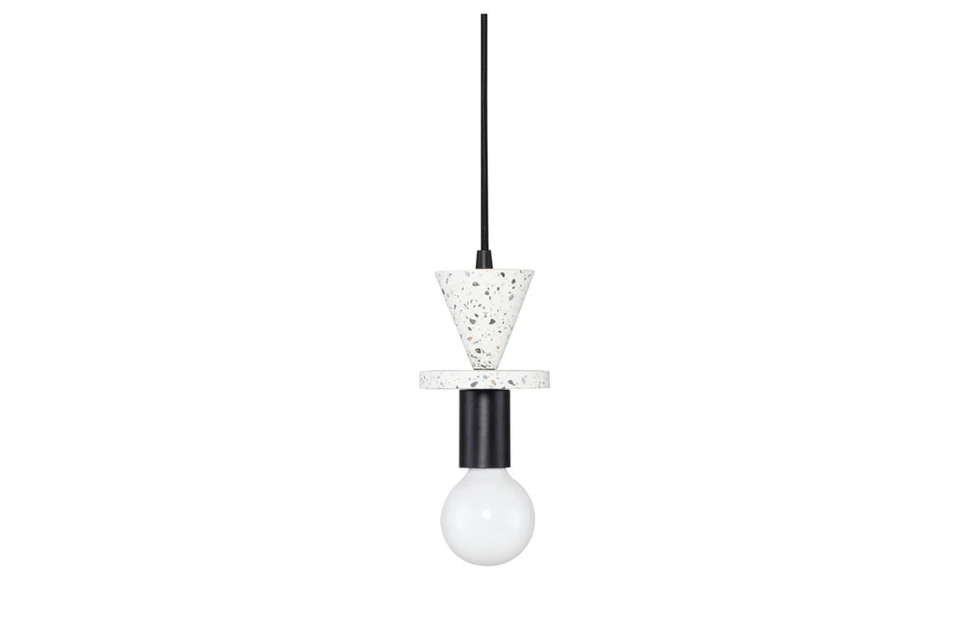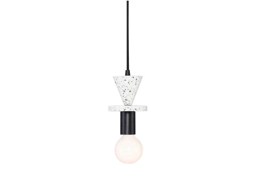 Stacked forms and mixed materials like terrazzo and metal are skillfully used to create the Aura Pendant. Its stylish design is reminiscent of a modern sculpture, bringing an artful air to your kitchen, entryway, or bedroom.
