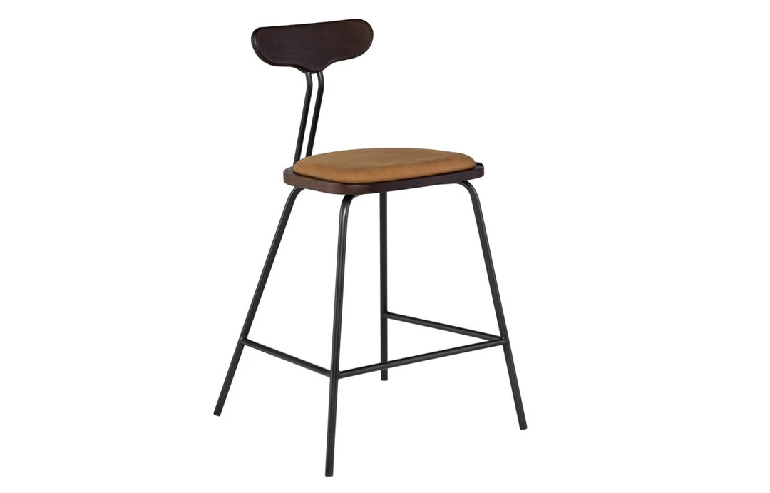 Dayton Counter Stool is available storm leather seat, umber leather seat and smoked oak backrest.
