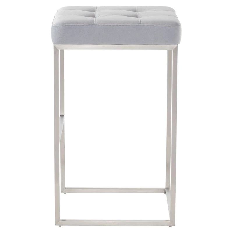 The Chi bar stool is an ideal example of simple elegant modern design. The brushed stainless steel frame, including fixed foot rest, uses a bare minimum of materials in its construction creating an exceptionally light effect. The stool is topped with a dense form fitting tufted velour seat cushion for added comfort.