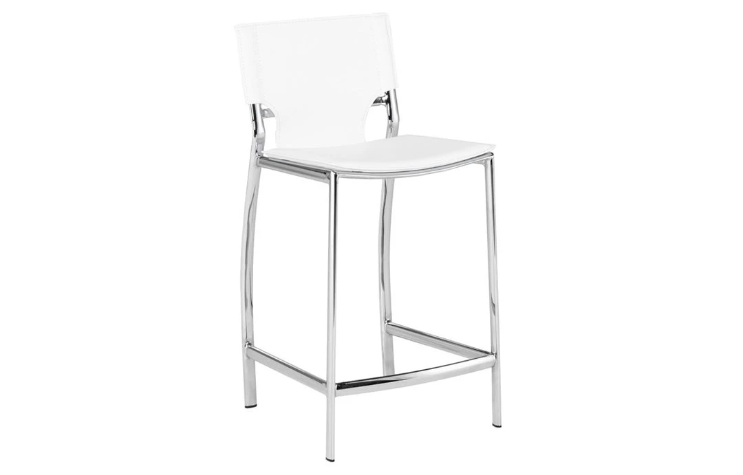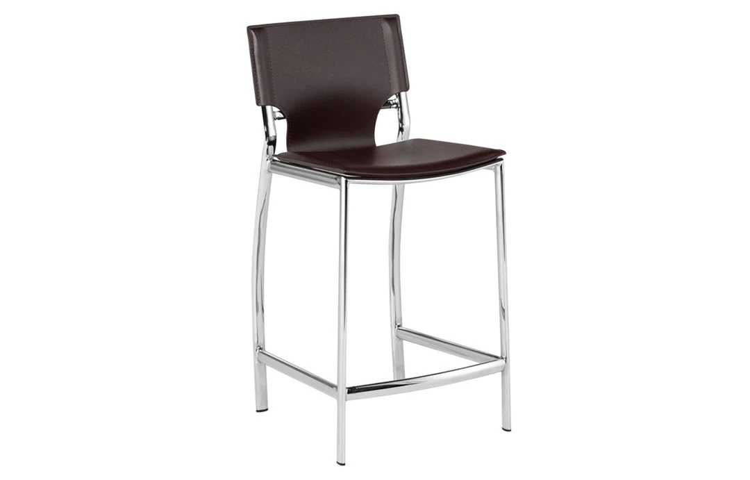 The Lisbon counter stool, a pleasing union of dining comfort and smart contemporary design. Setting the tone, a sturdy, light frame using elliptical steel tubing with a chrome finish. The highlight, an artfully sculpted leather seat and seat back, designed for support and comfort.