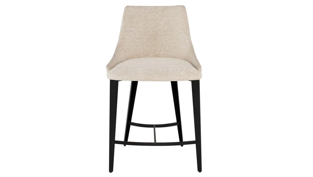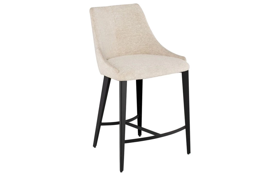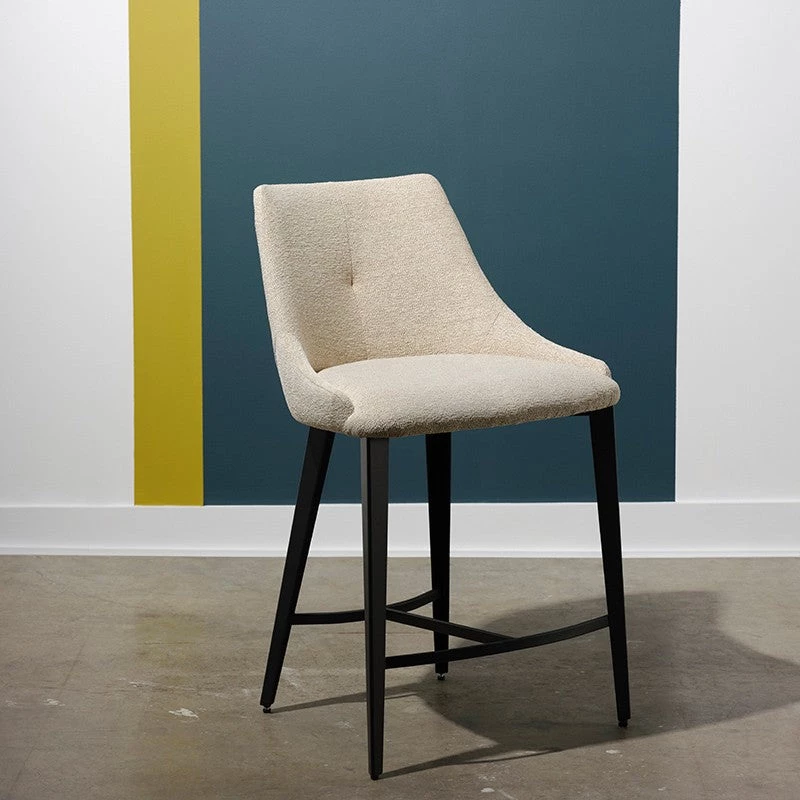 Polished and sophisticated, the Renee bar stool is an expert blend of refined style and classic simplicity. Its titanium steel legs are tapered and connected at the bottom by a convenient footrest. Lush boucle fabric adds to the timeless allure.