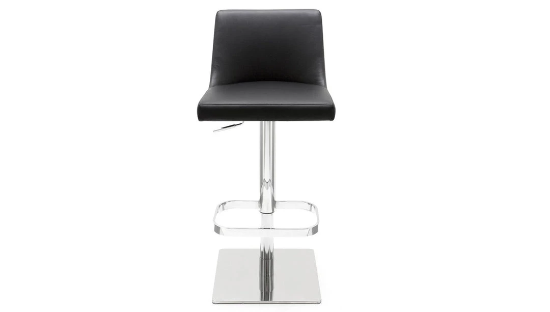 The Rome is an example of chic, contemporary, minimalism emphasizing comfort. A refined, comfy upholstered seat is paired with a high polished stainless steel hydraulic lift base finished with a sculptural oval foot rest. The adjustable stool provides a full range of flexible applications.